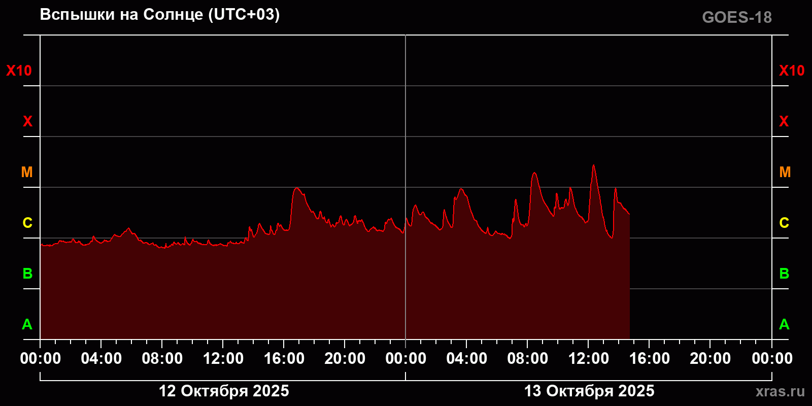 Текущий уровень вспышек сейчас на уровне M1.0 — M2.0. Четырехмесячный максимум составляет M6.4 (вспышка была 28 сентября). Возможно побьет. Чтобы поставить рекорды на срок больше 4 месяцев потребуется выйти на уровень вспышек X. Чисто на глаз потенциала для этого пока не видно, хотя на глаз такое и не оценишь.