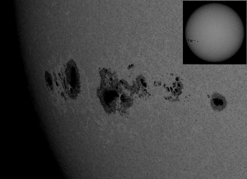 Слабые духом астрономы NOAA, ответственные за присваивание номеров группам пятен, очевидно борясь с паникой в своих рядах, сегодня предприняли попытку смягчить шок и разбили данный комплекс сразу на три группы пятен. Единая площадь комплекса была разделена в каталоге между тремя номерами: 4296 (левые пятна), 4294 (центральные пятна) и 4298 (правые пятна), в результате чего центральная группа 4294 лишилась значительной доли своей законной площади, похудела в каталоге до 1100 единиц, и формально занимает теперь лишь второе место года. Впрочем, мало кто сомневается, что уже завтра она вернёт упущенное, хотя, возможно, борьба еще не закончилась и у NOAA уже заготовлена новая пара номеров для ответного удара. Впрочем, все эти действия не влияют на объективный суммарный размер группы.
