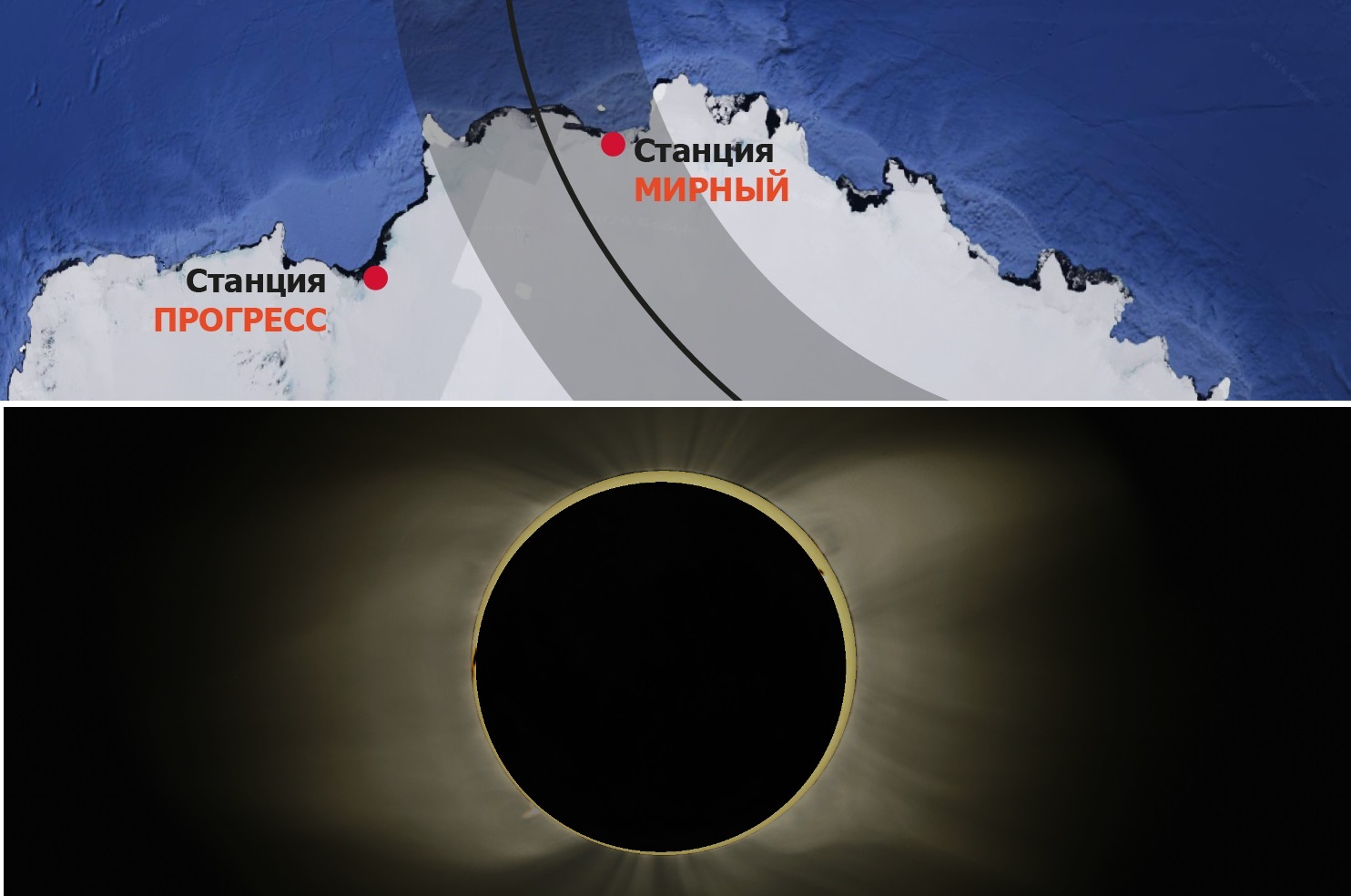 Кольцевое солнечное затмение — редкое астрономическое явление, при котором Луна проходит по диску Солнца, но оказывается недостаточно большой, чтобы закрыть его целиком, — произойдёт на Земле в следующий вторник, 17 февраля, примерно с 14:50 до 15:36 по московскому времени. Увидеть, как солнечный диск превращается в кольцо, можно будет только в Антарктиде, и число зрителей, которые смогут наблюдать это своими глазами, судя по всему, будет наименьшим в XXI веке — скорее всего, всего несколько человек. Единственной из десятков антарктических станций, попадающей в кольцевую полосу затмения, является станция «Мирный», находящаяся на побережье моря Дейвиса. Ближайшие к ней станции «Дейвис» (Австралия) и ещё одна российская станция «Прогресс» окажутся уже за пределами этой зоны, хотя и смогут увидеть Солнце в форме полумесяца, частично закрытое Луной (но не кольцо).
