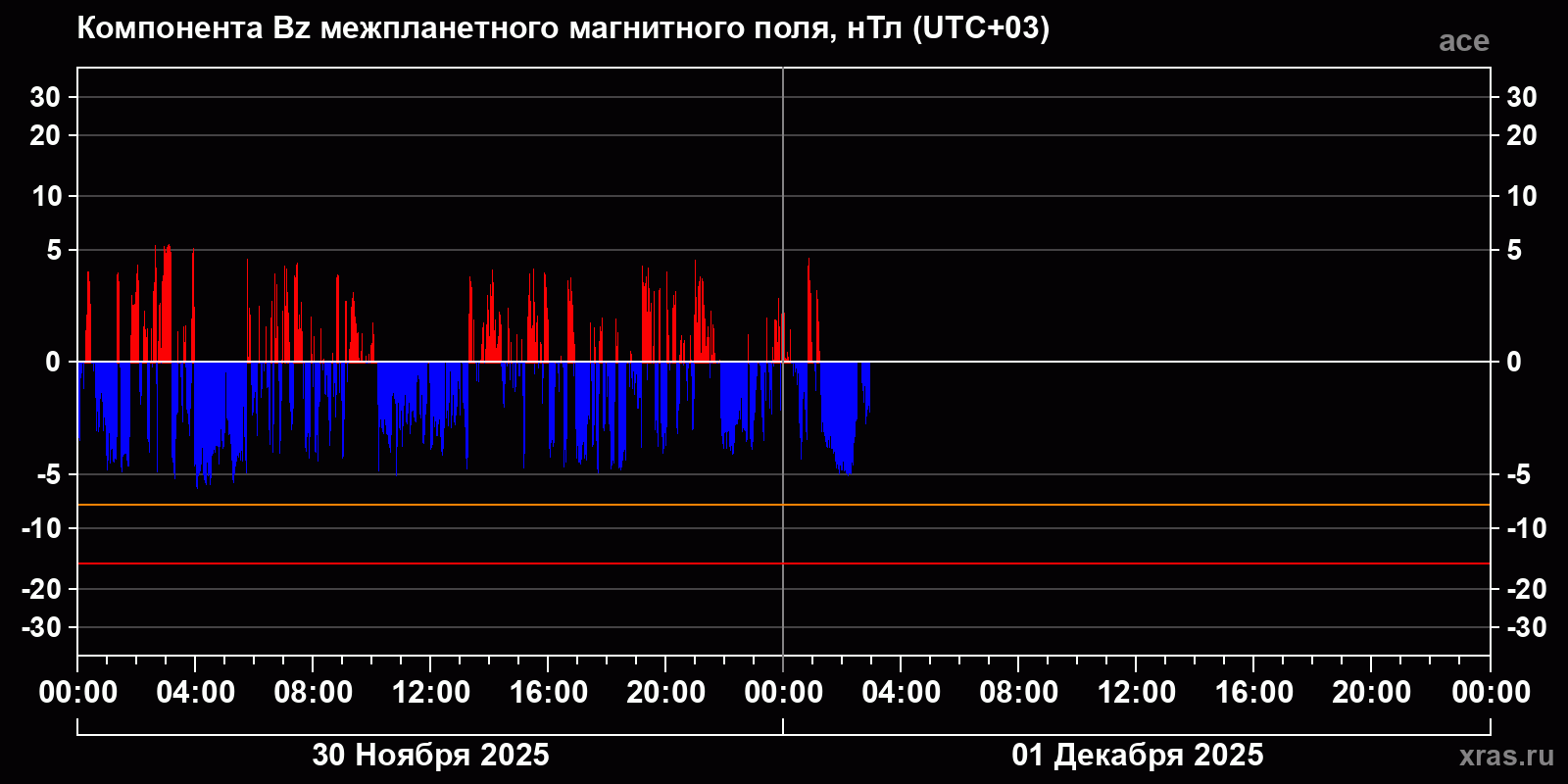 Динамика за 30 ноября и 1 декабря 2025 года по данным спутника ace