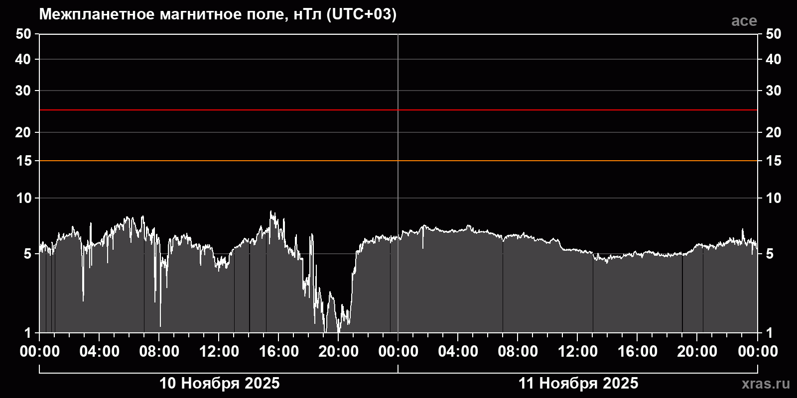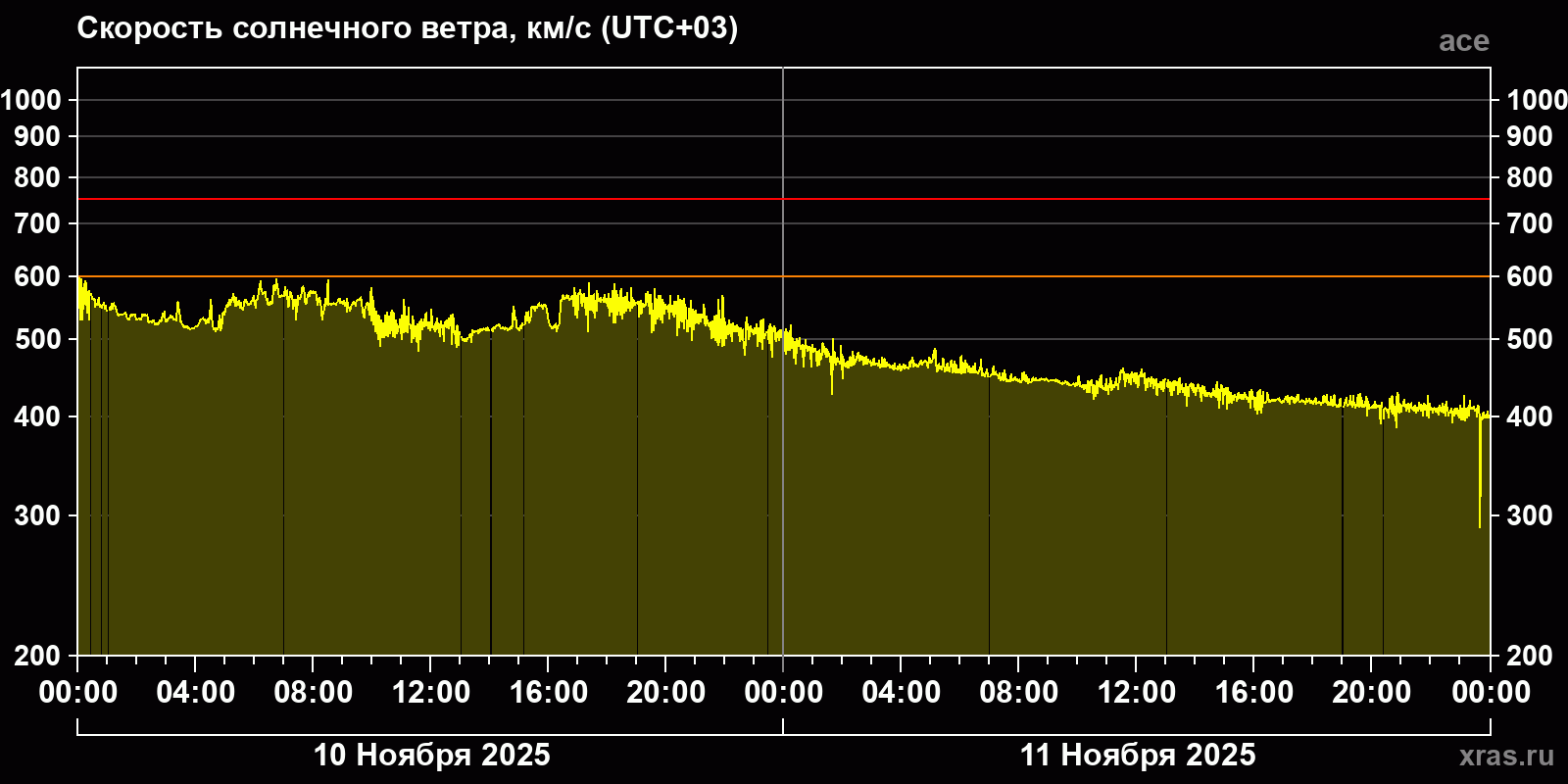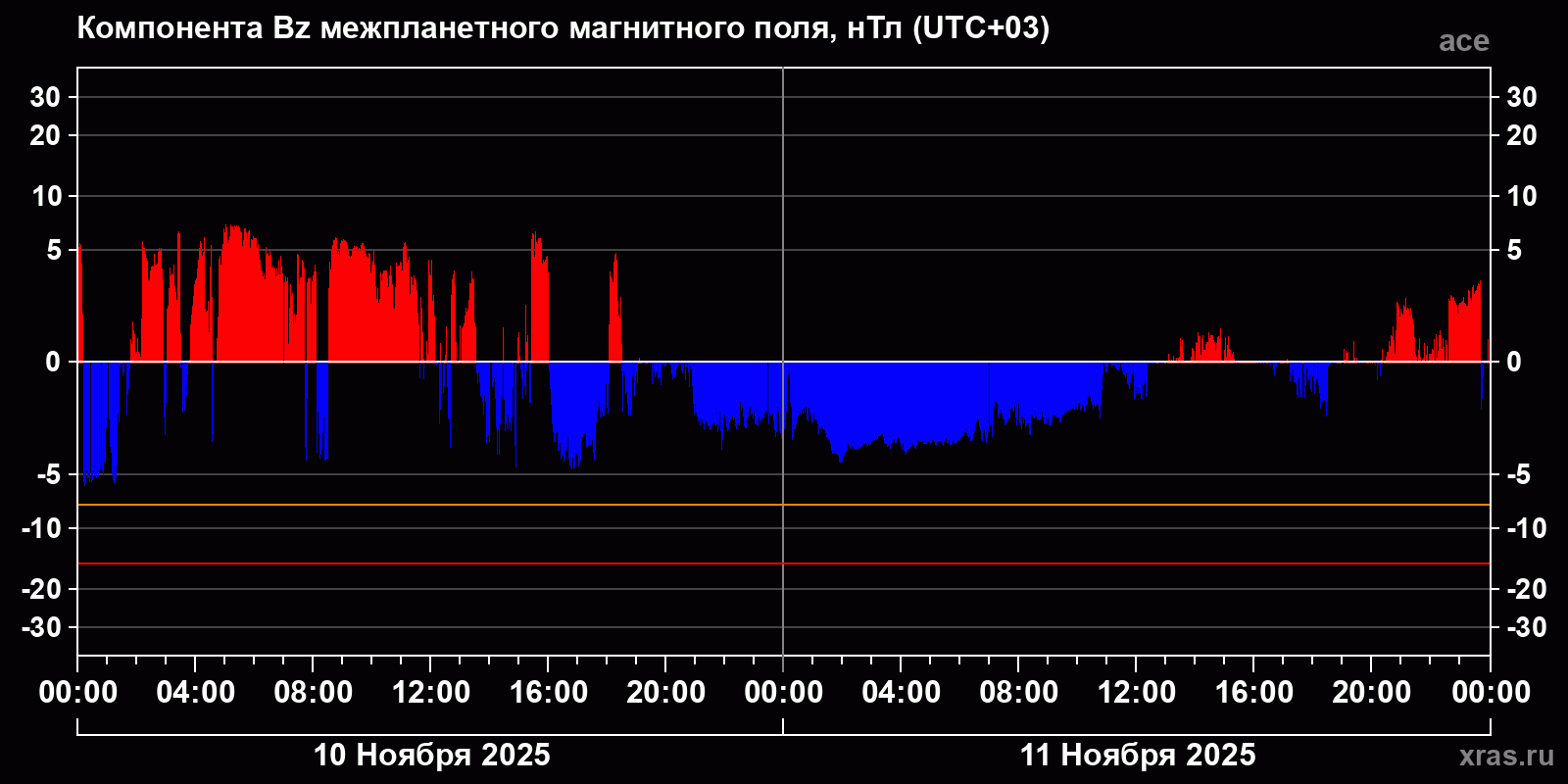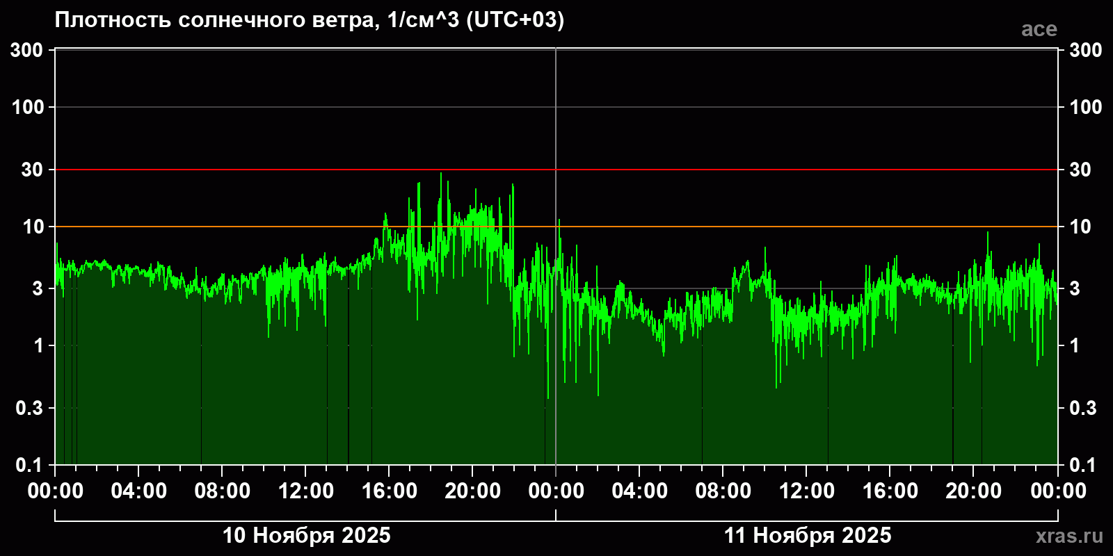 Динамика за 10 и 11 ноября 2025 года по данным спутника ace
