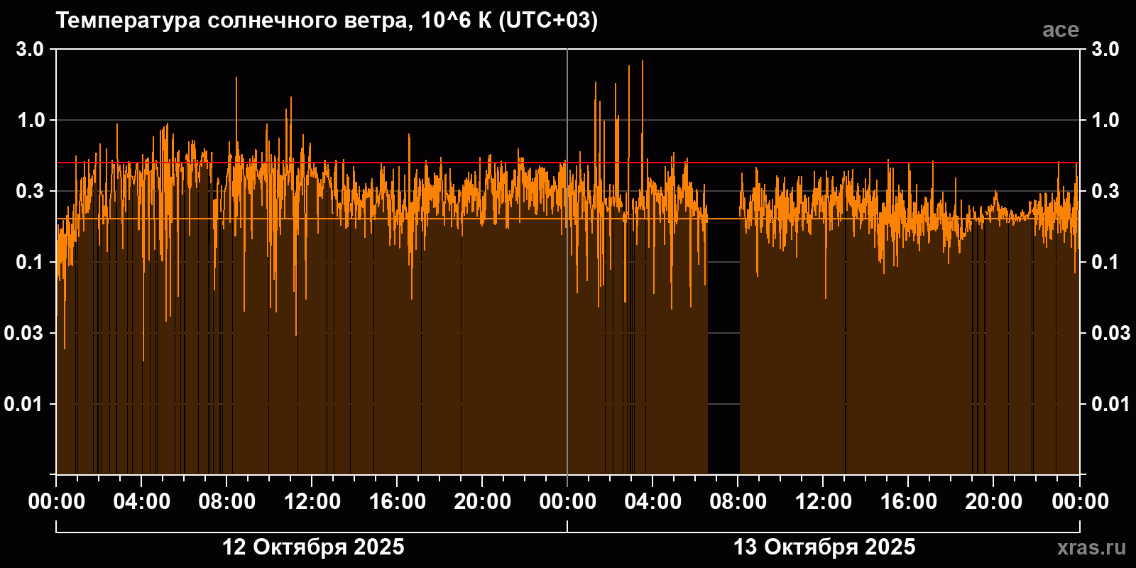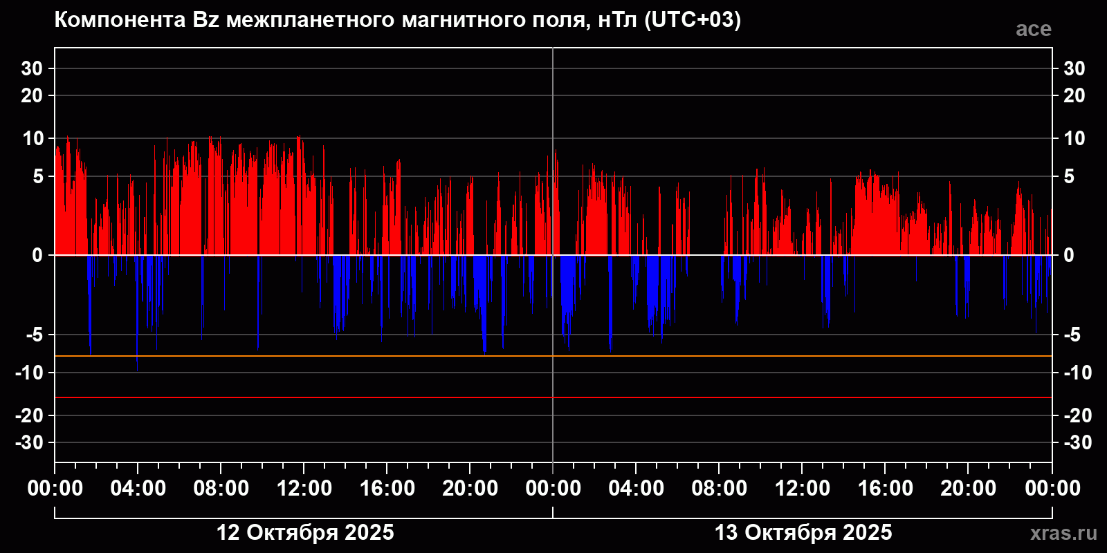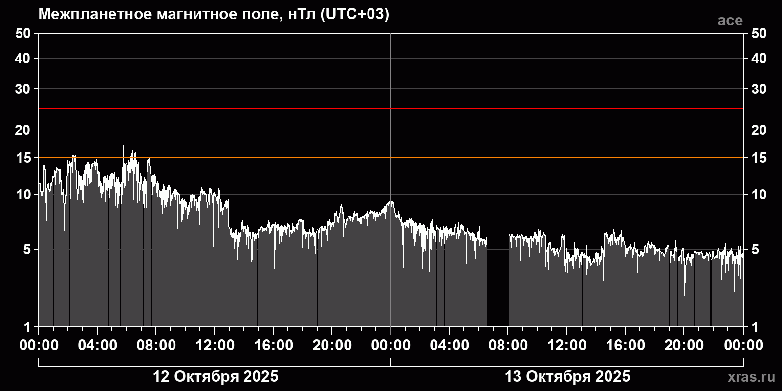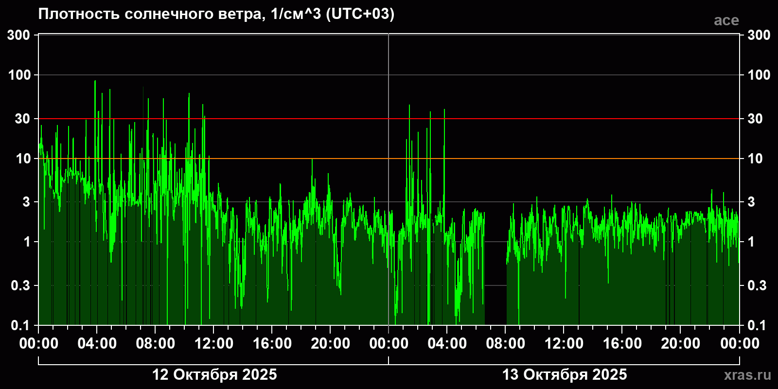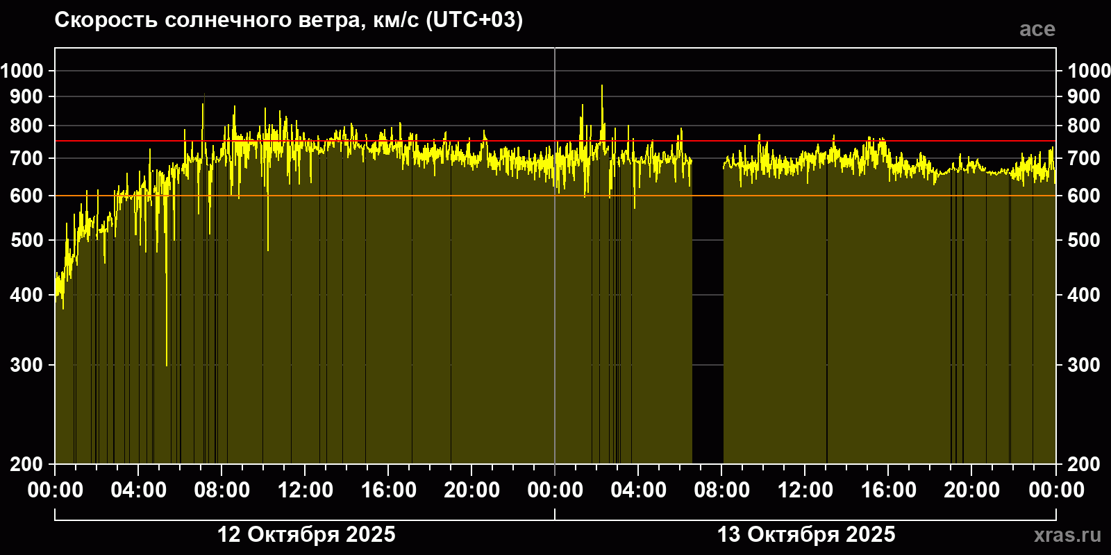 Динамика за 12 и 13 октября 2025 года по данным спутника ace