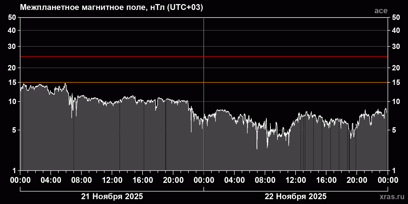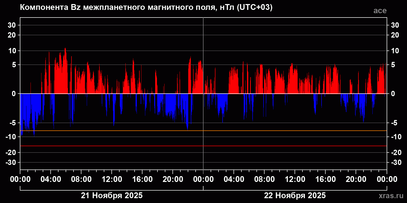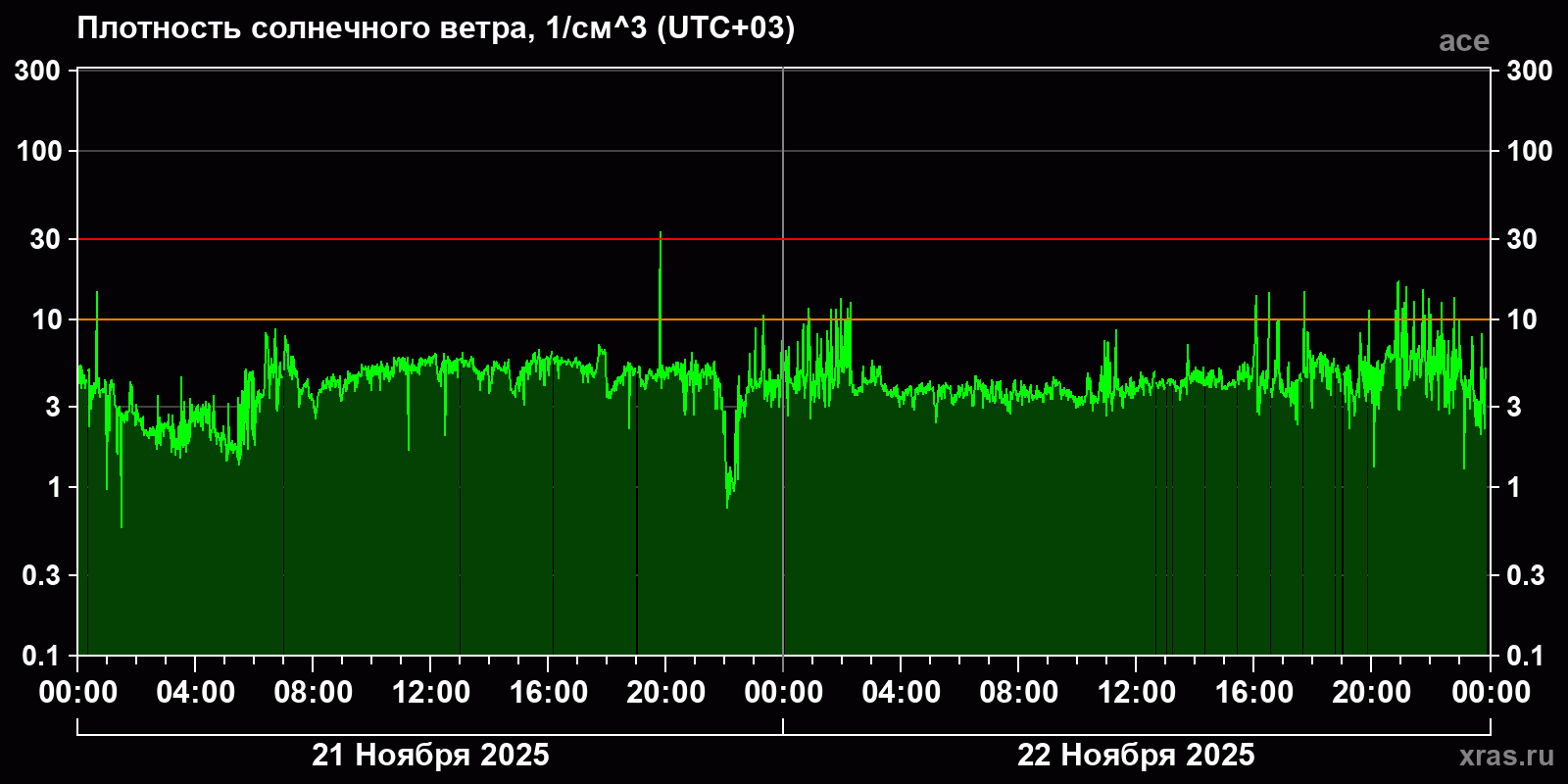 Динамика за 21 и 22 ноября 2025 года по данным спутника ace