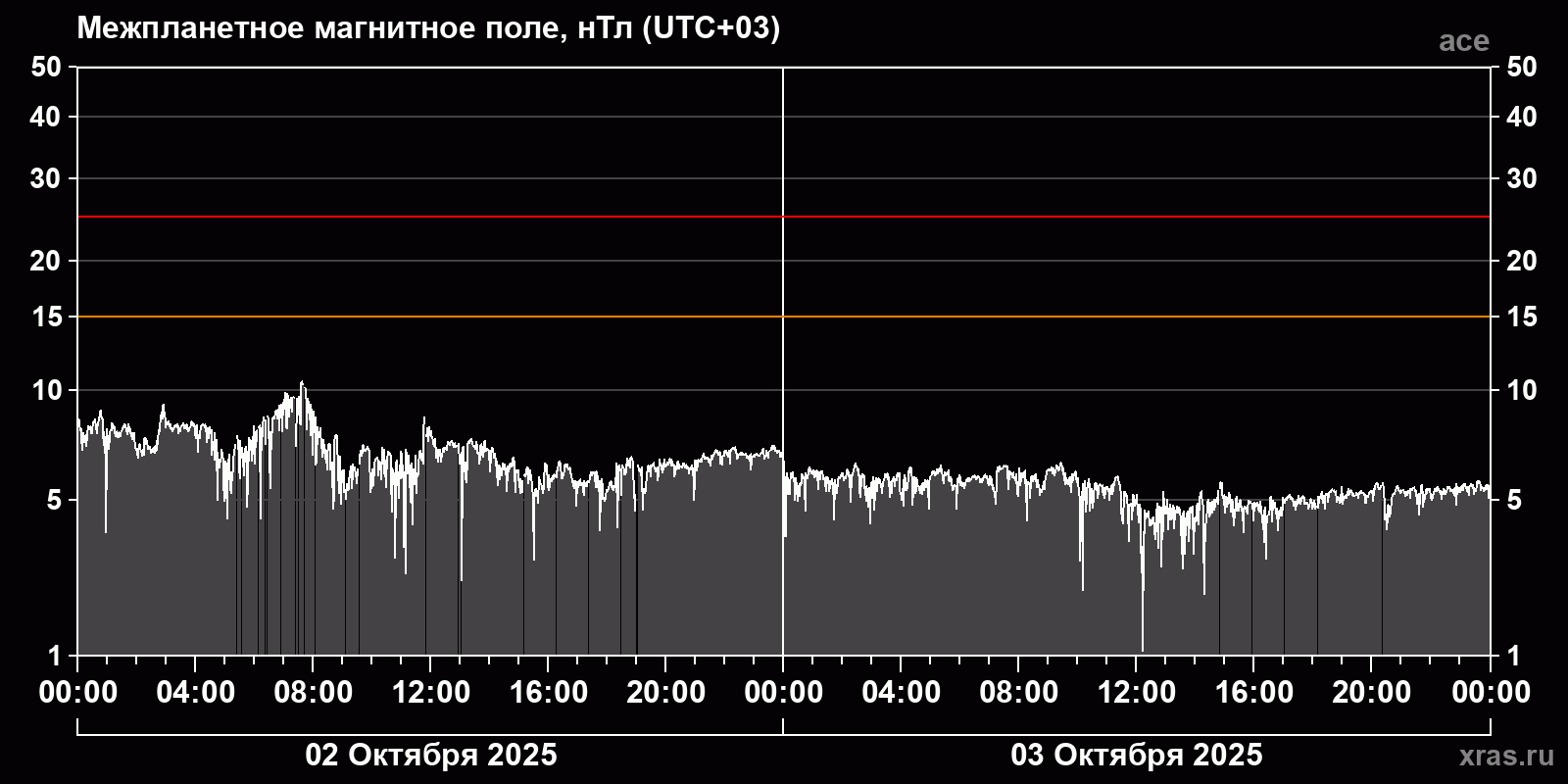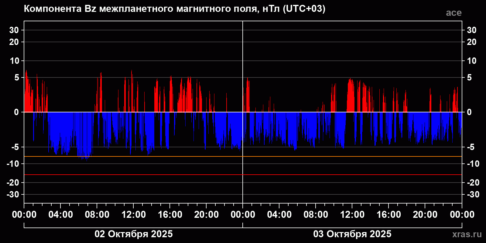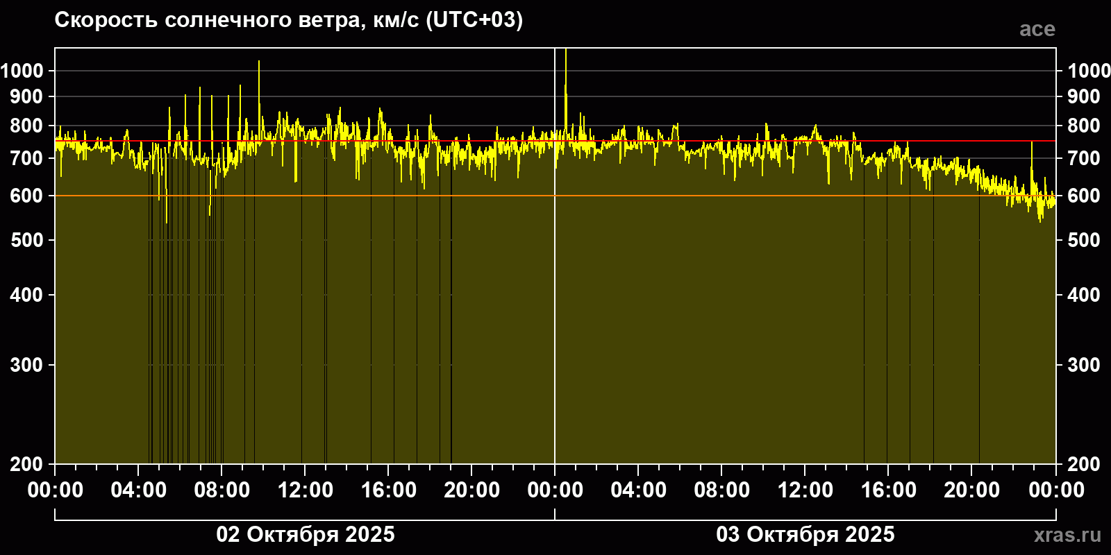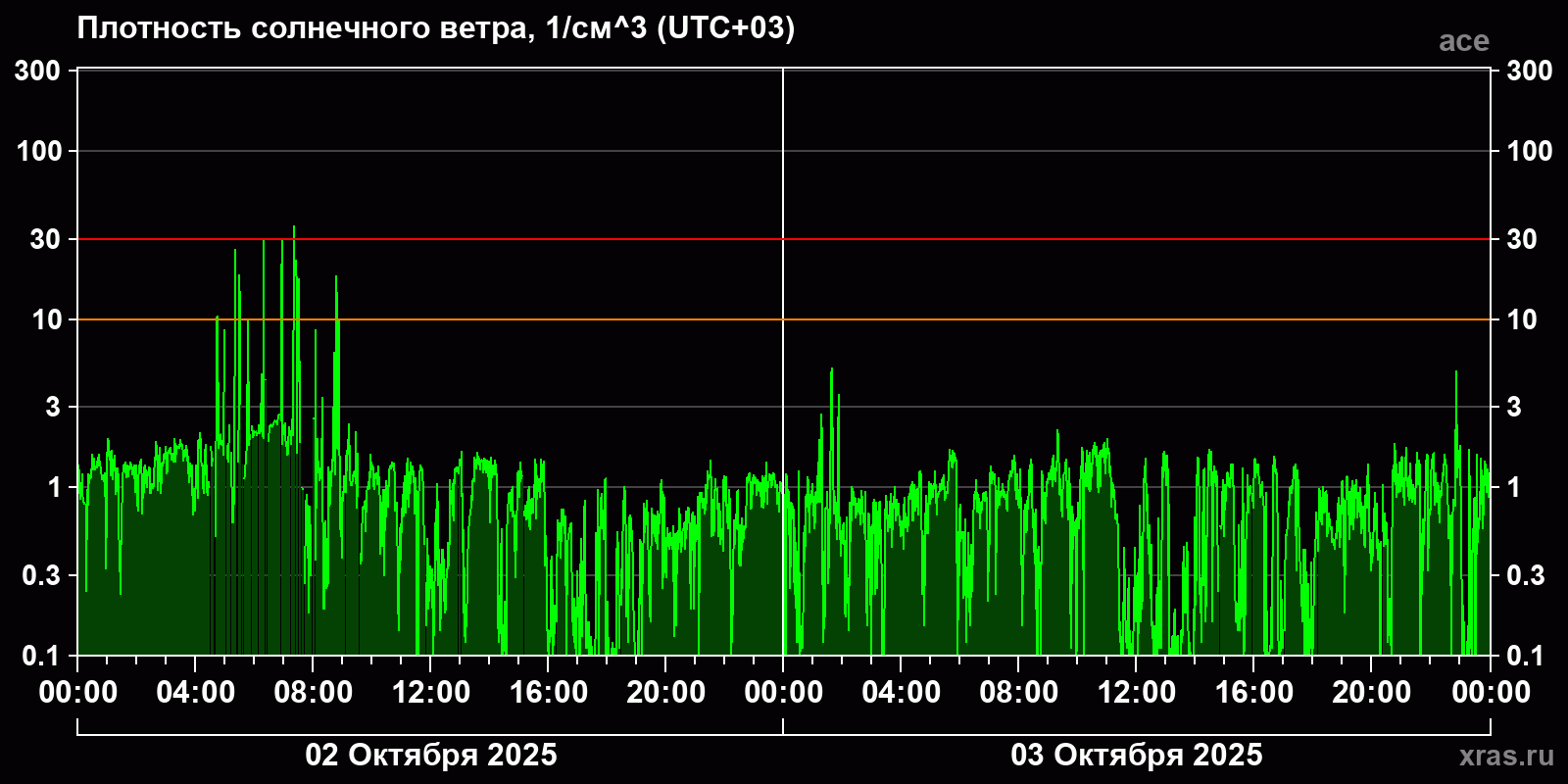 Динамика за 2 и 3 октября 2025 года по данным спутника ace