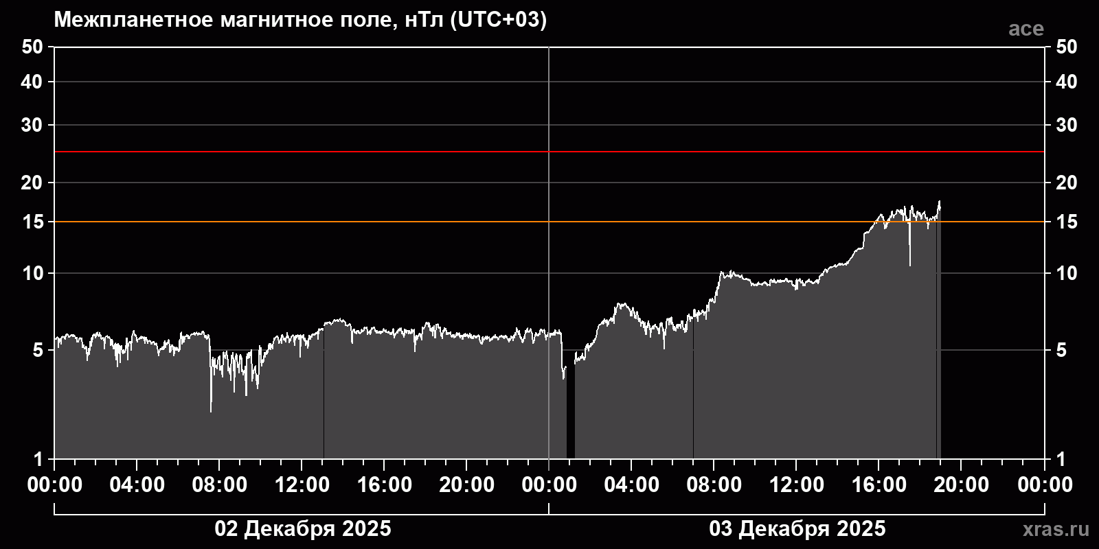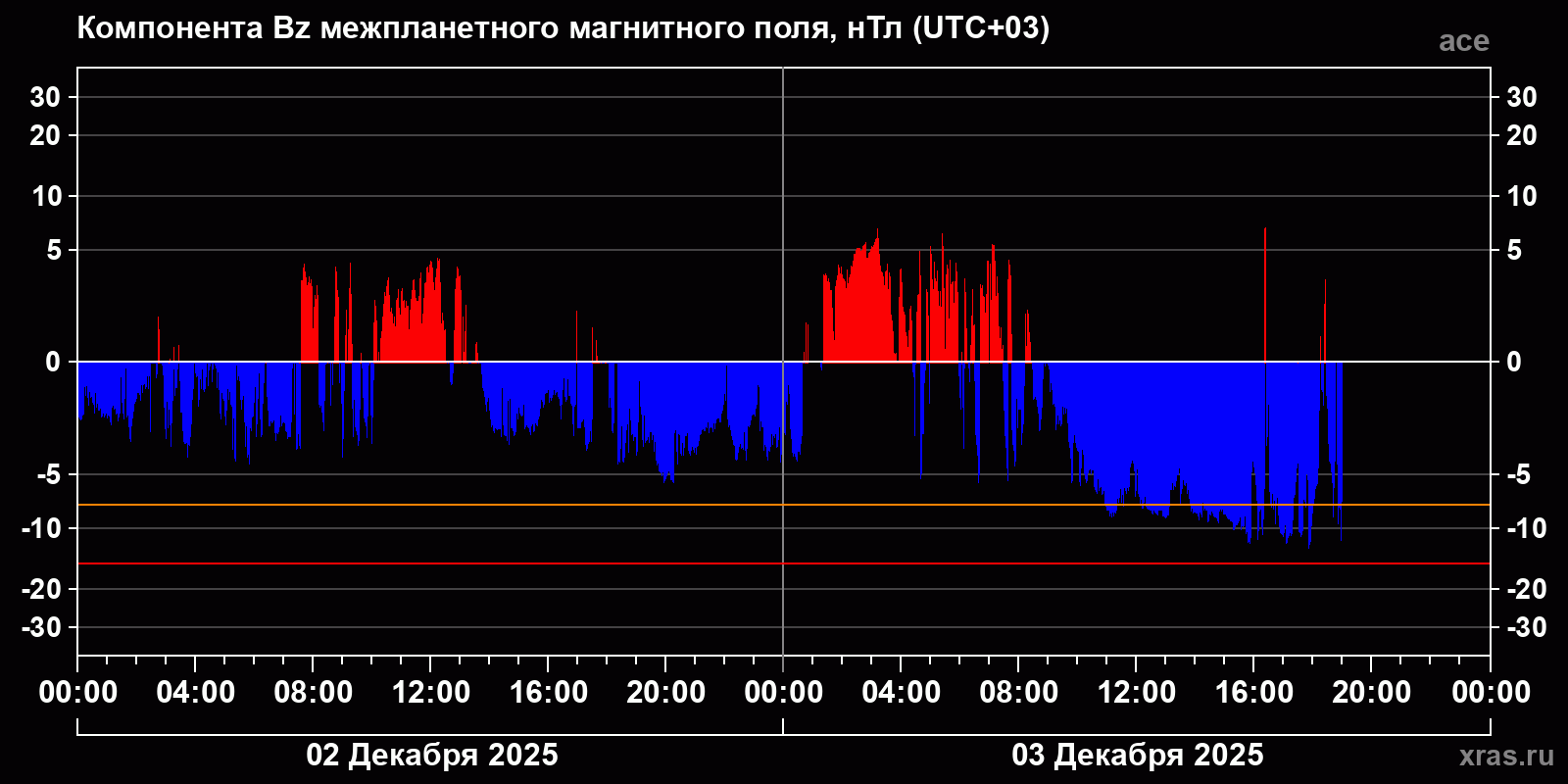 Динамика за 2 и 3 декабря 2025 года по данным спутника ace