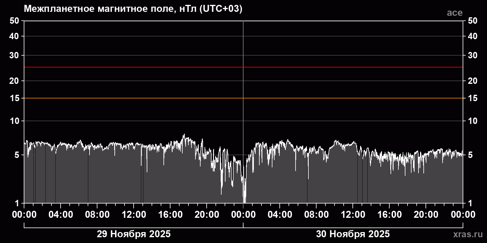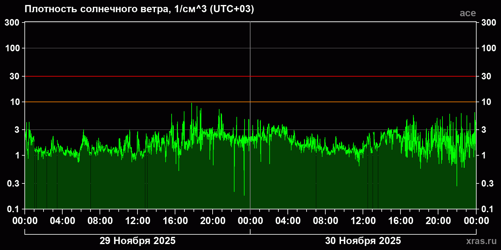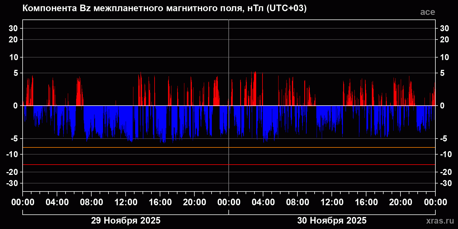 Динамика за 29 и 30 ноября 2025 года по данным спутника ace