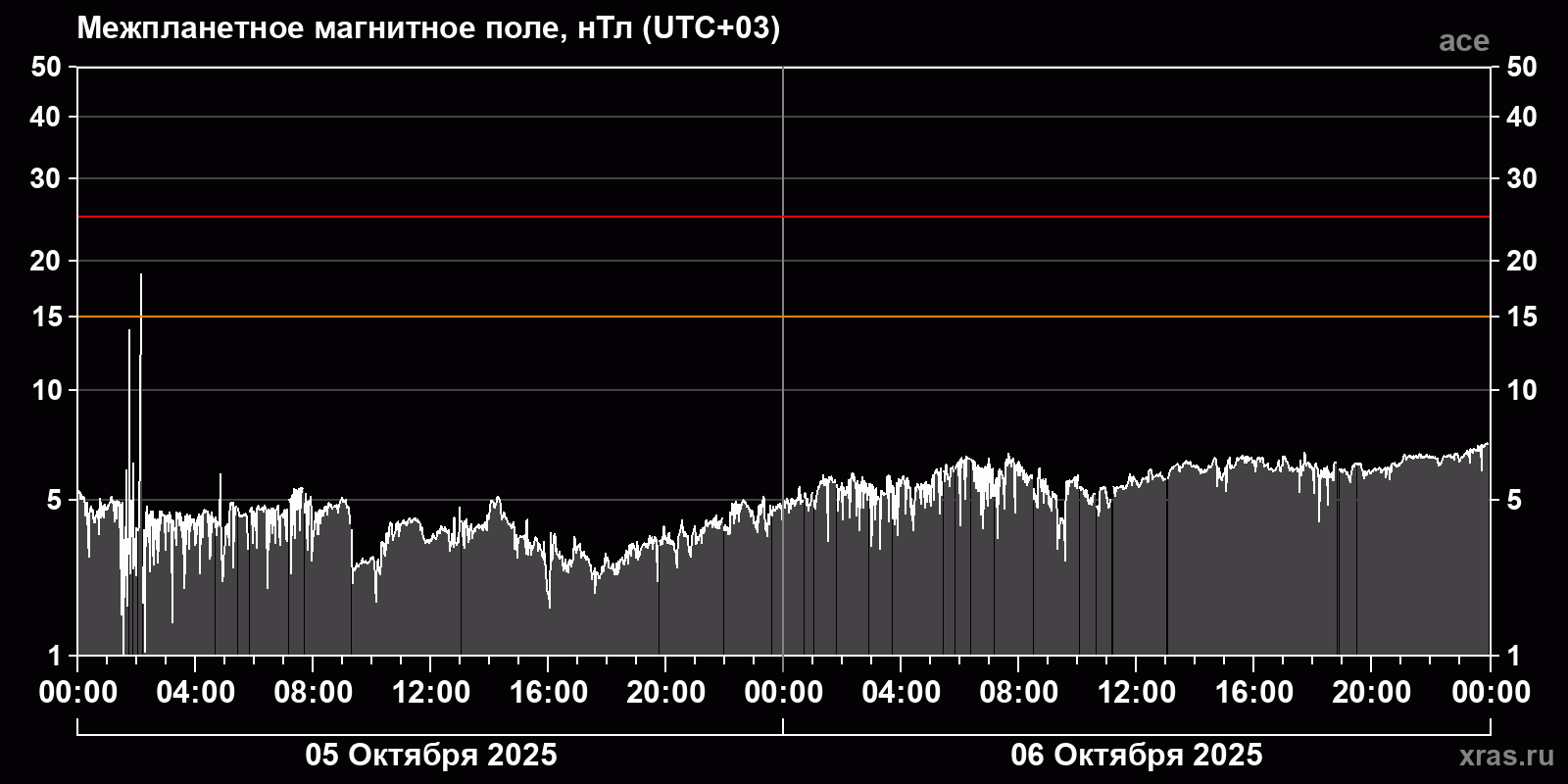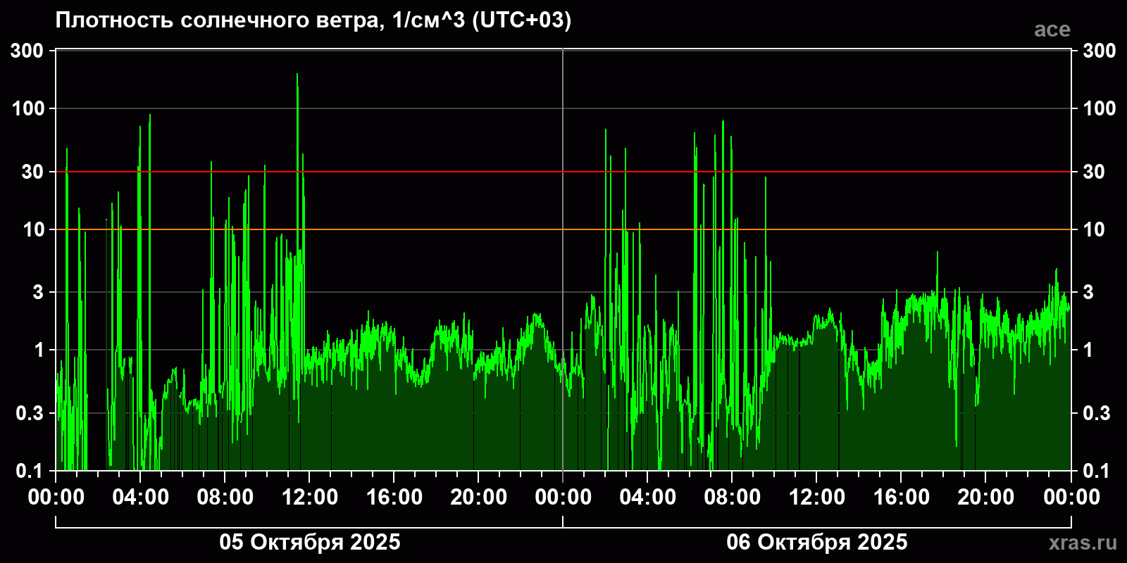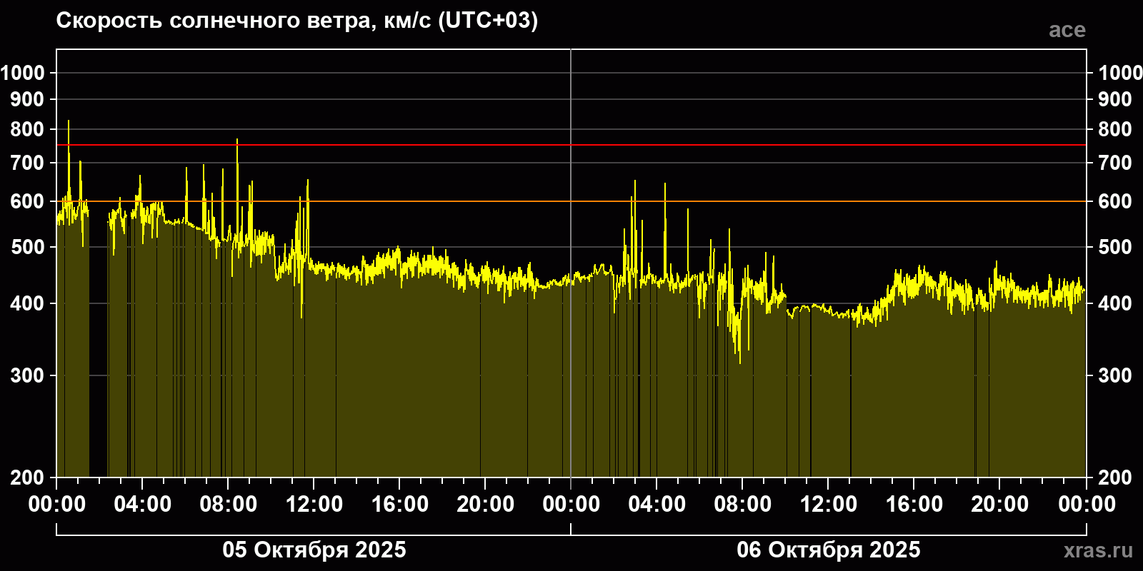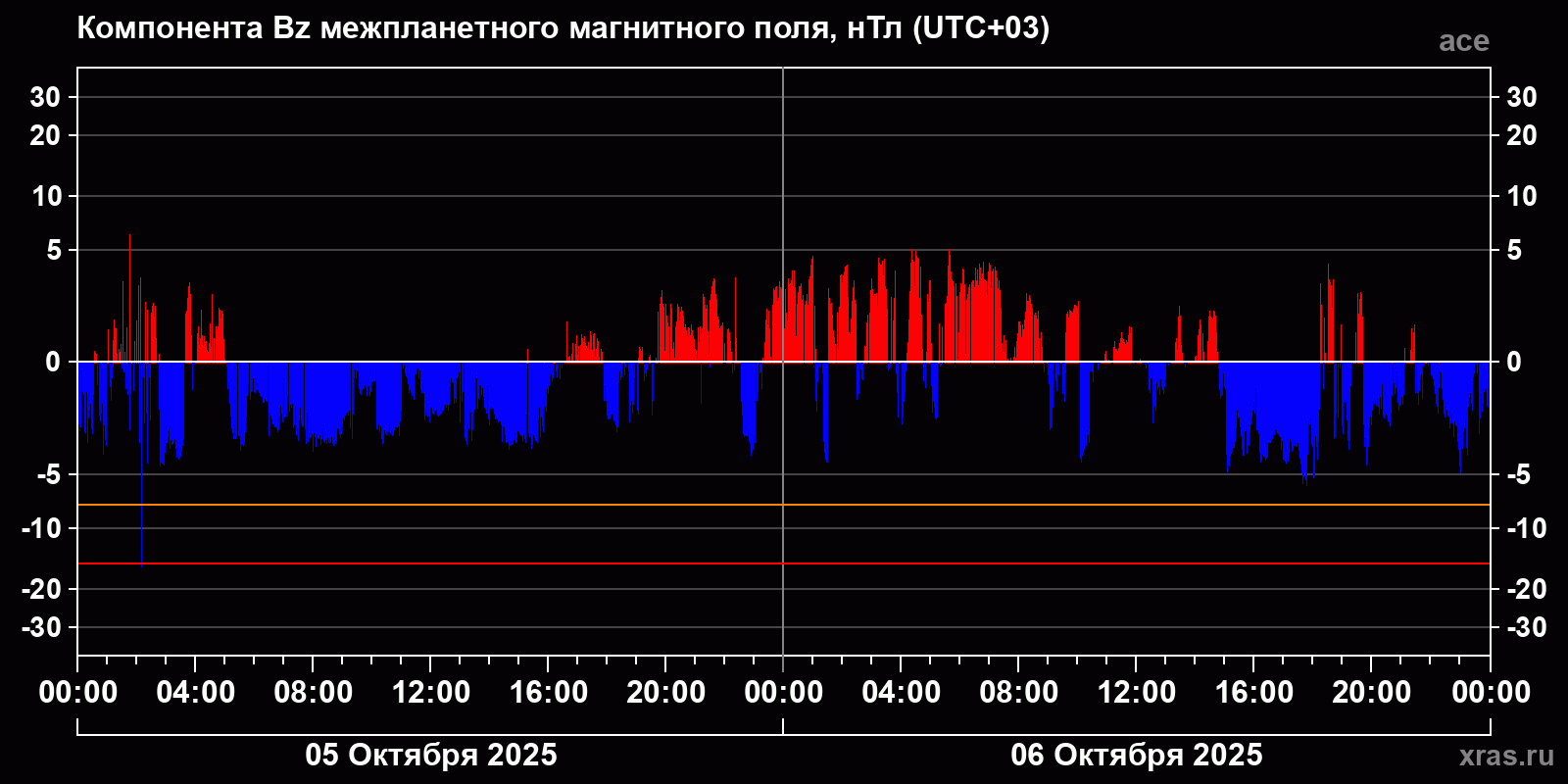 Динамика за 5 и 6 октября 2025 года по данным спутника ace
