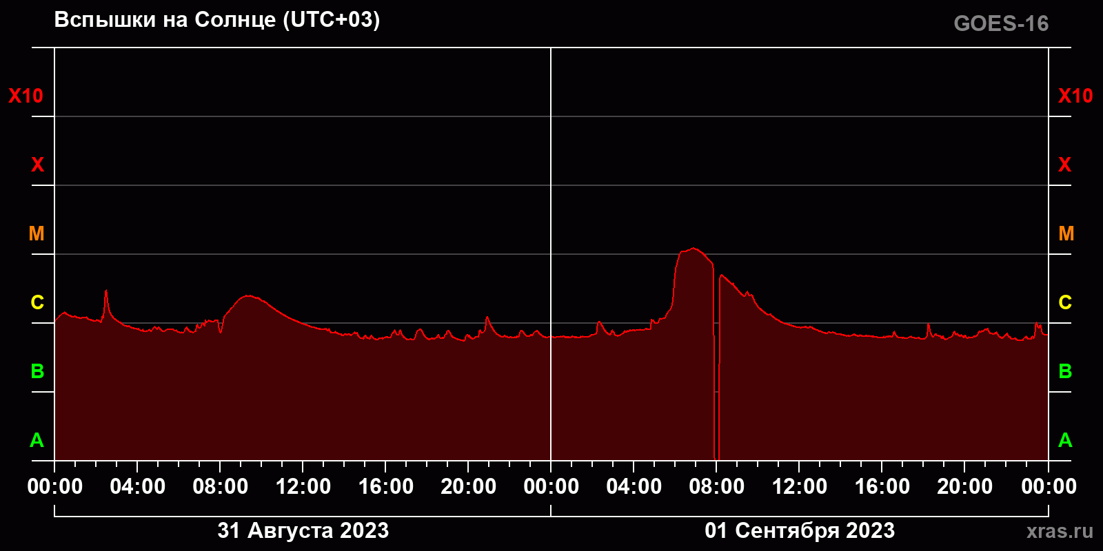 График солнечной активности с 31 августа по 01 сентября 2023 года