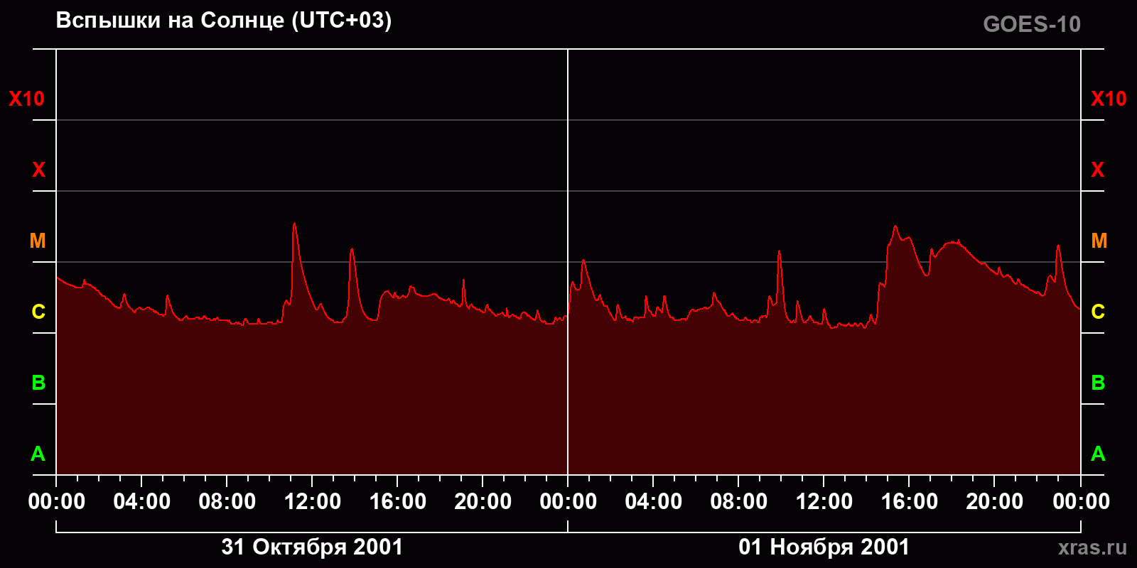 График солнечной активности с 31 октября по 01 ноября 2001 года