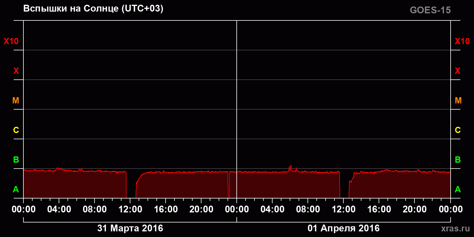 График солнечной активности с 31 марта по 01 апреля 2016 года