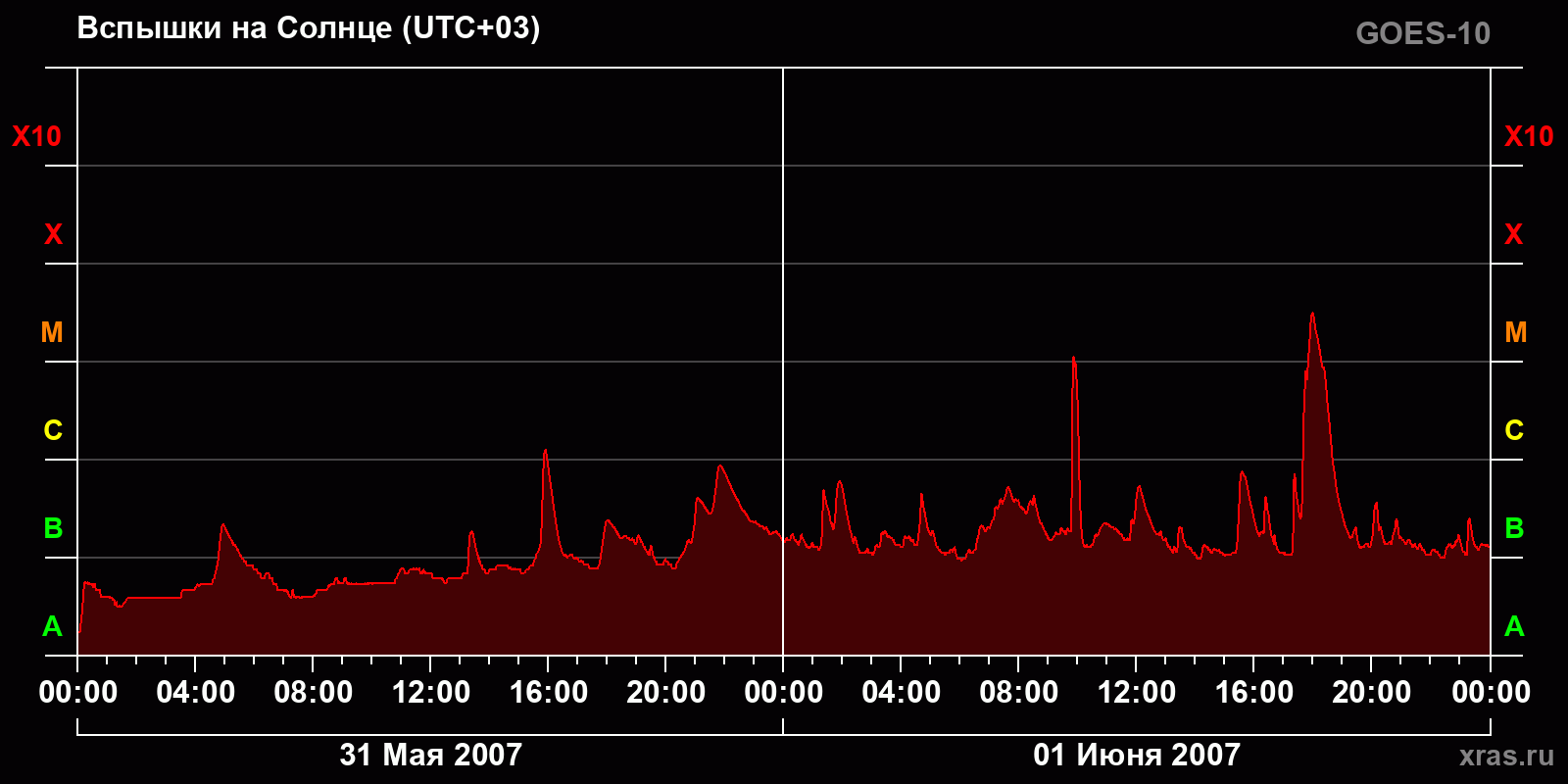 График солнечной активности с 31 мая по 01 июня 2007 года