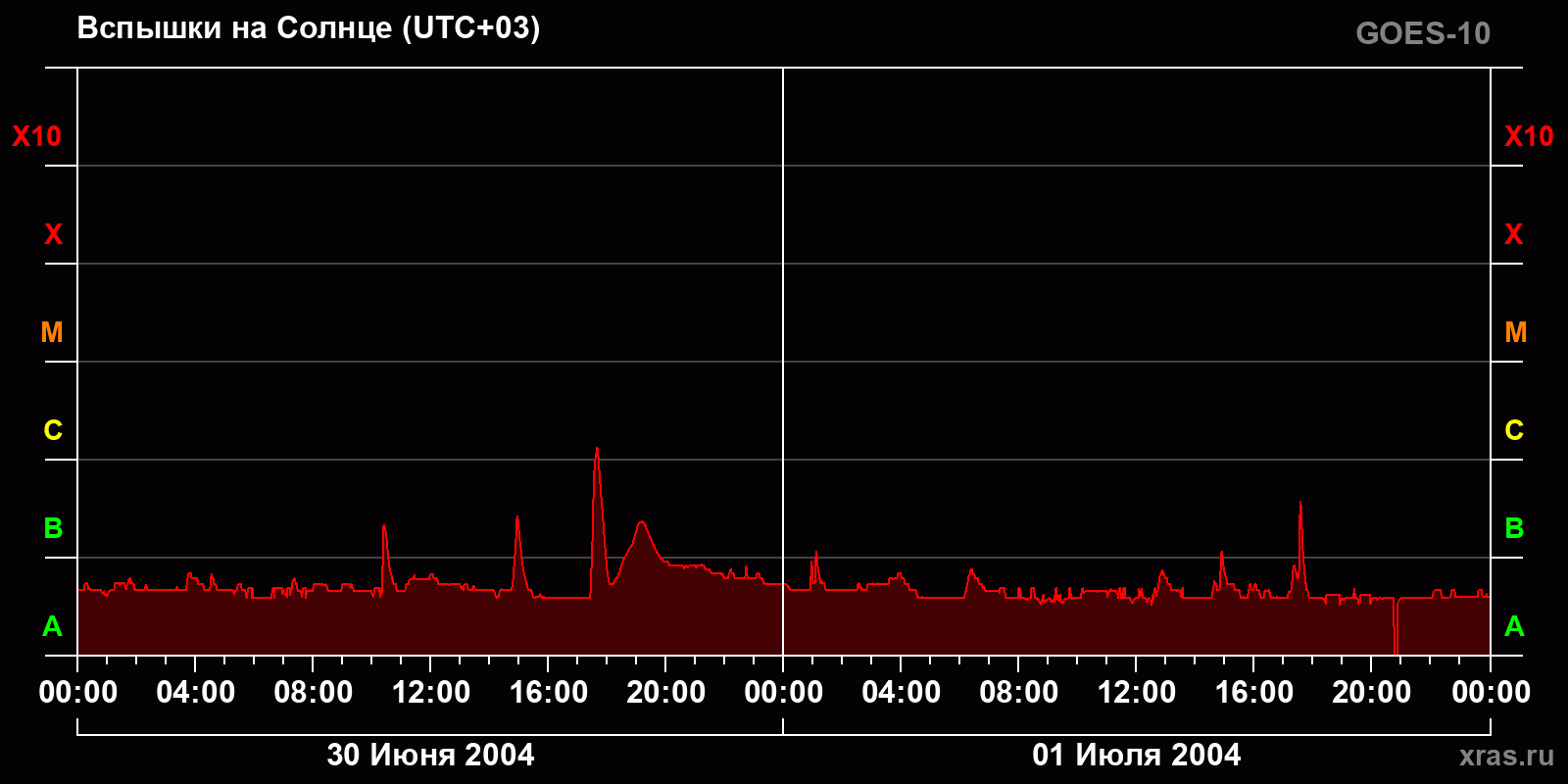 График солнечной активности с 30 июня по 01 июля 2004 года