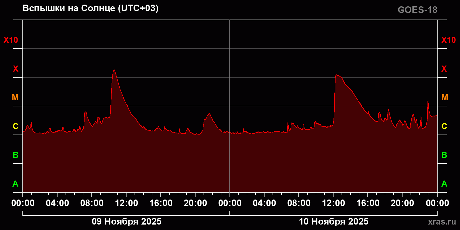 График солнечной активности с 09 по 10 ноября 2025 года