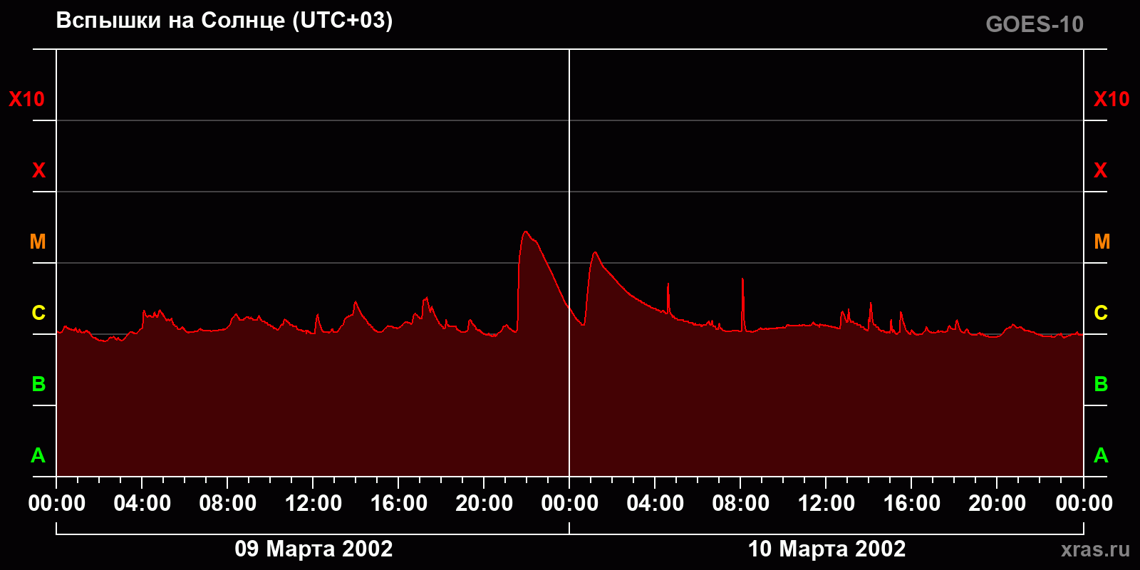 Вспышка уровня M1.3 (сильная) — в 01:10