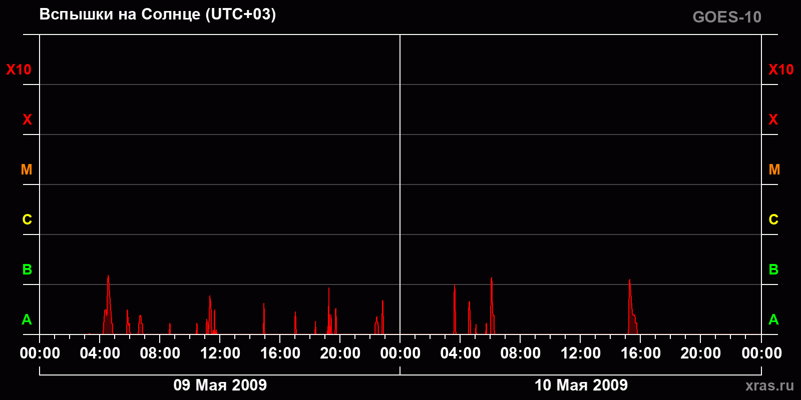 Список солнечных вспышек за 10 мая 2009 года