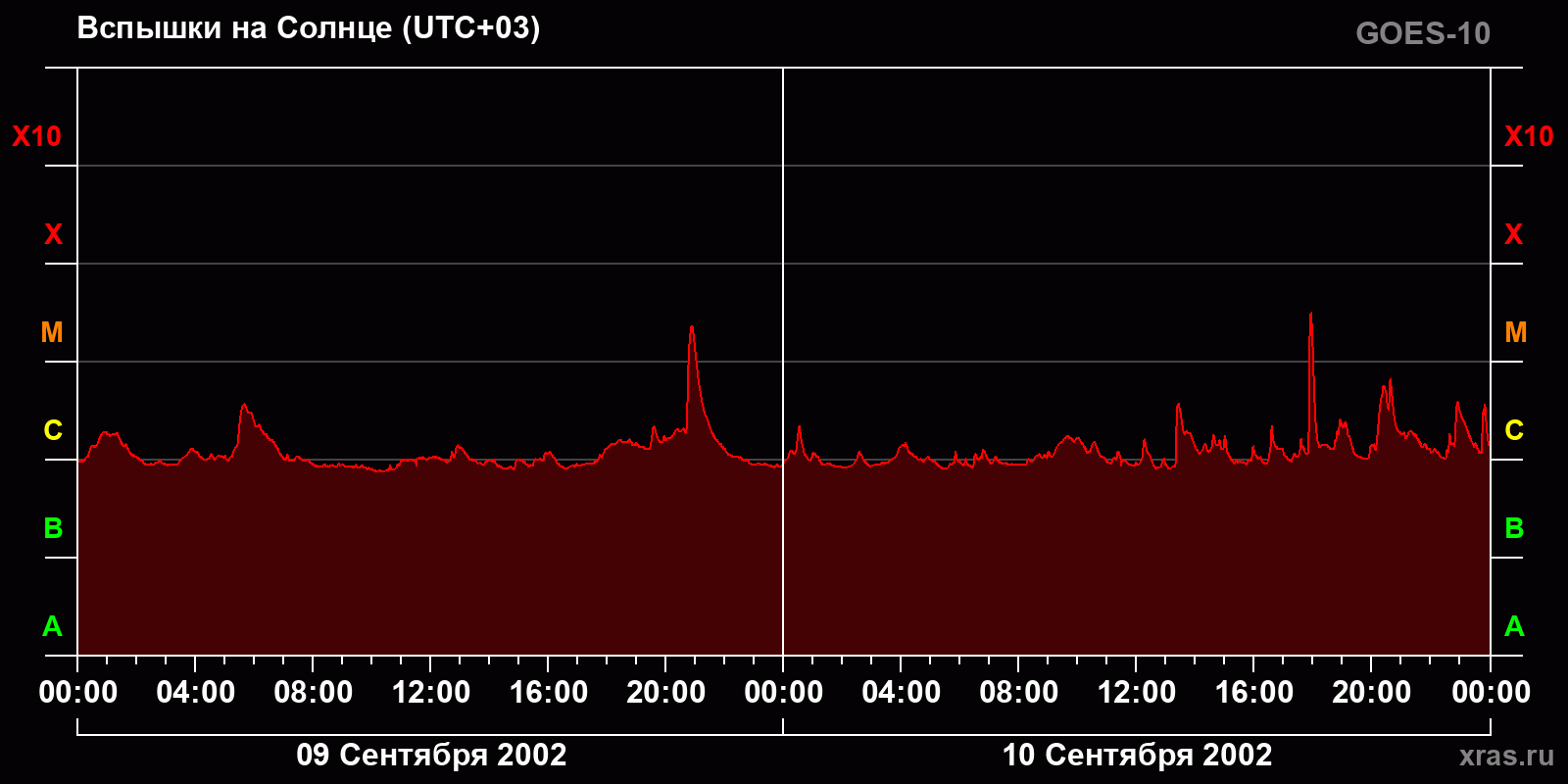 График солнечной активности с 09 по 10 сентября 2002 года