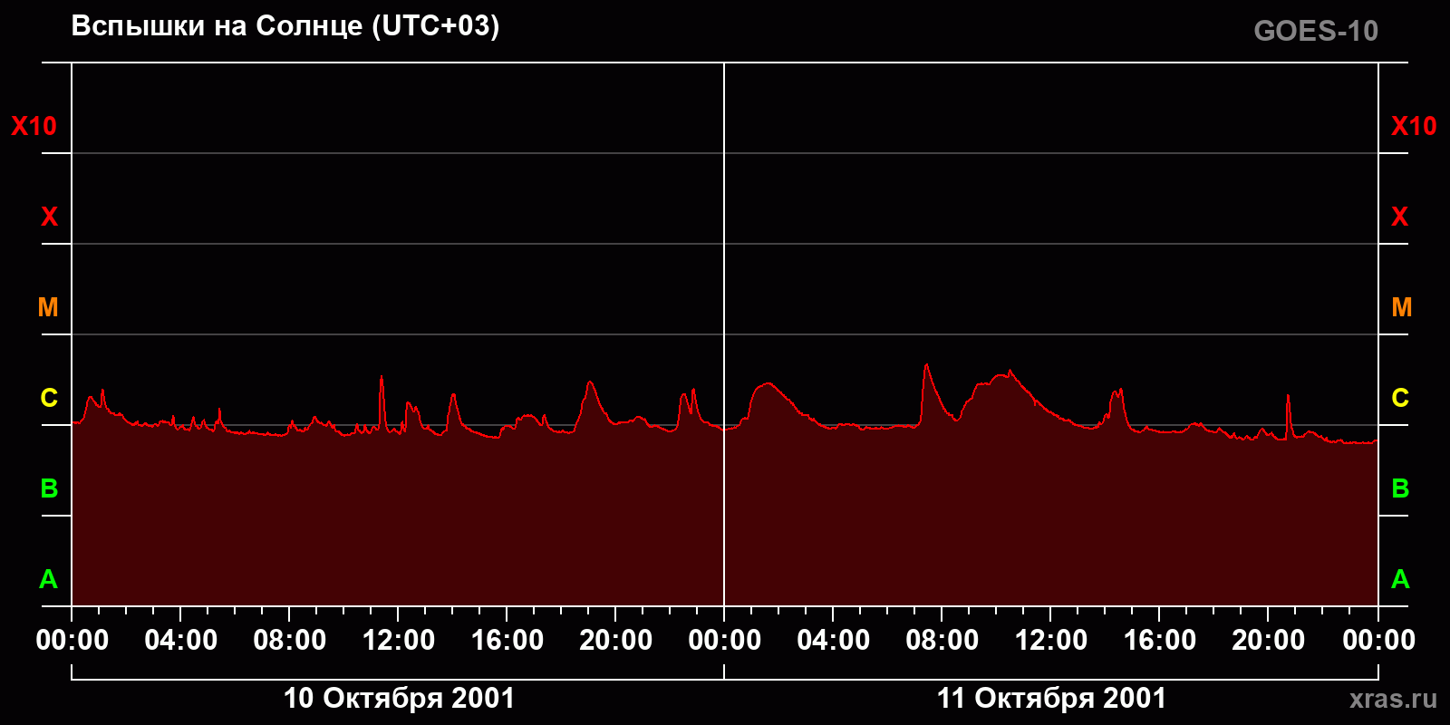 График солнечной активности с 10 по 11 октября 2001 года