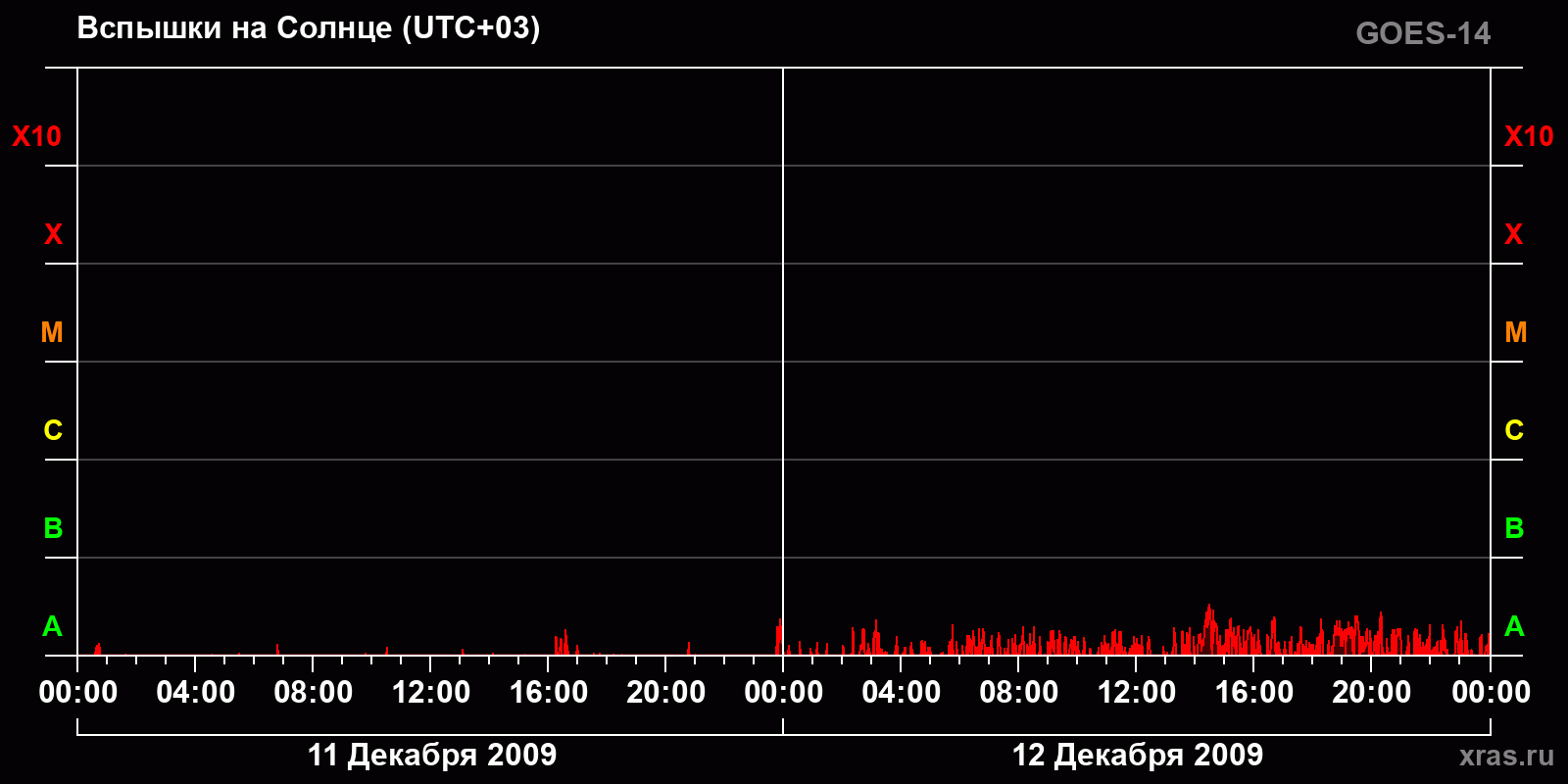 График солнечной активности с 11 по 12 декабря 2009 года