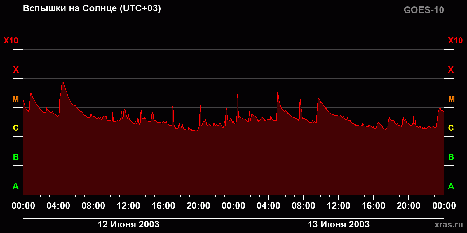 График солнечной активности с 12 по 13 июня 2003 года