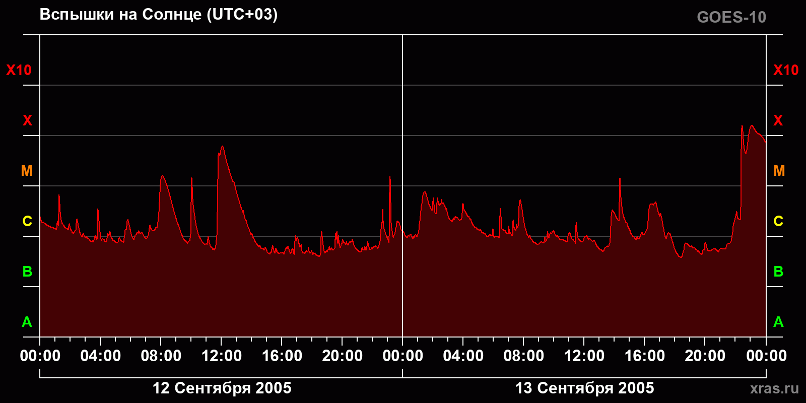 График солнечной активности с 12 по 13 сентября 2005 года