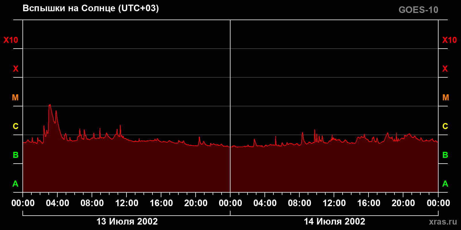 График солнечной активности с 13 по 14 июля 2002 года