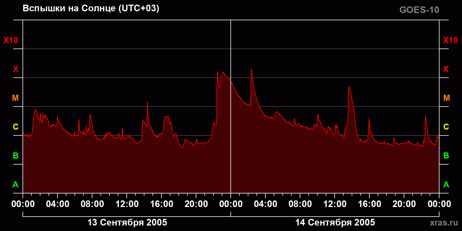 График солнечной активности с 13 по 14 сентября 2005 года