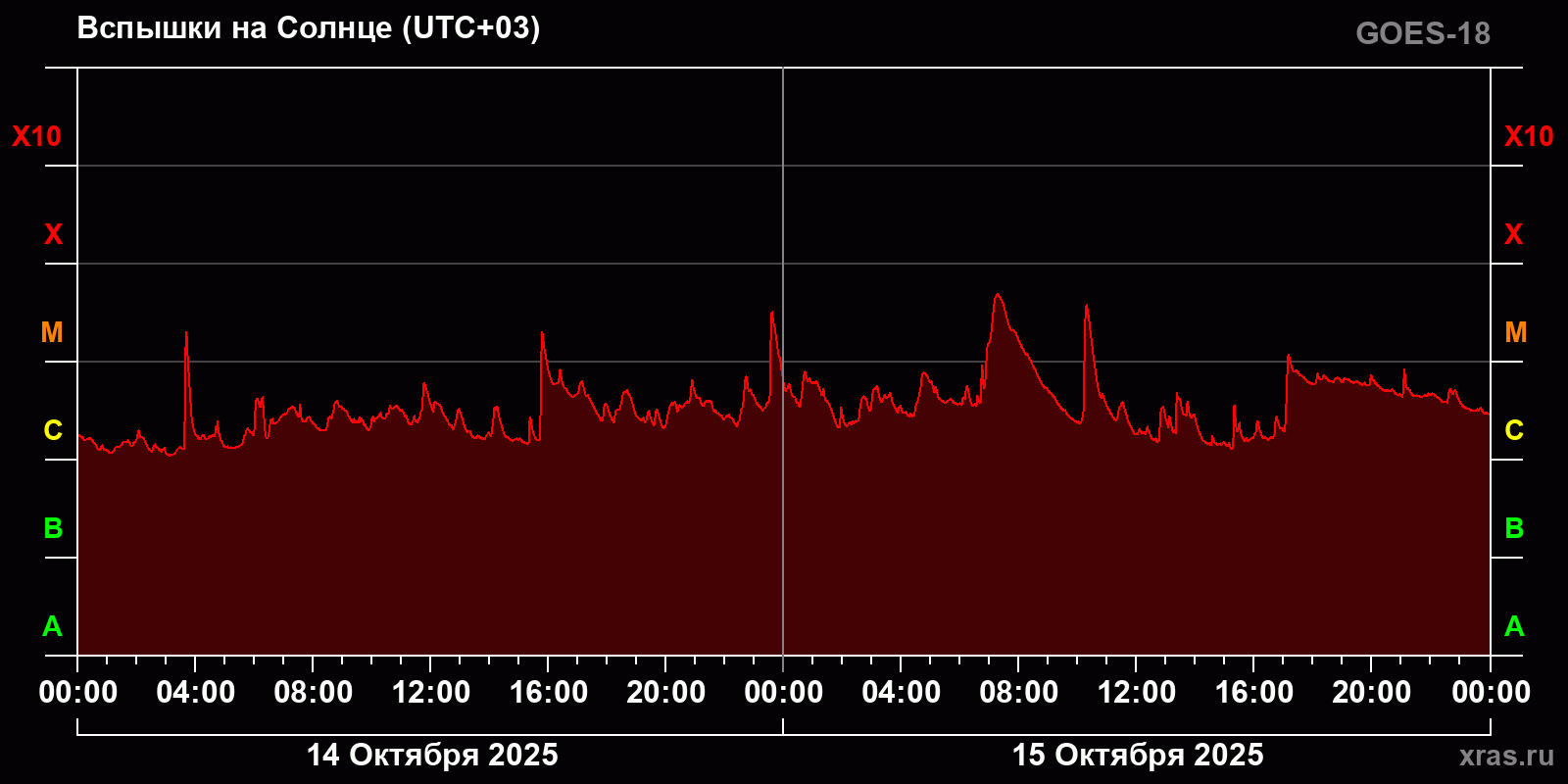 График солнечной активности с 14 по 15 октября 2025 года