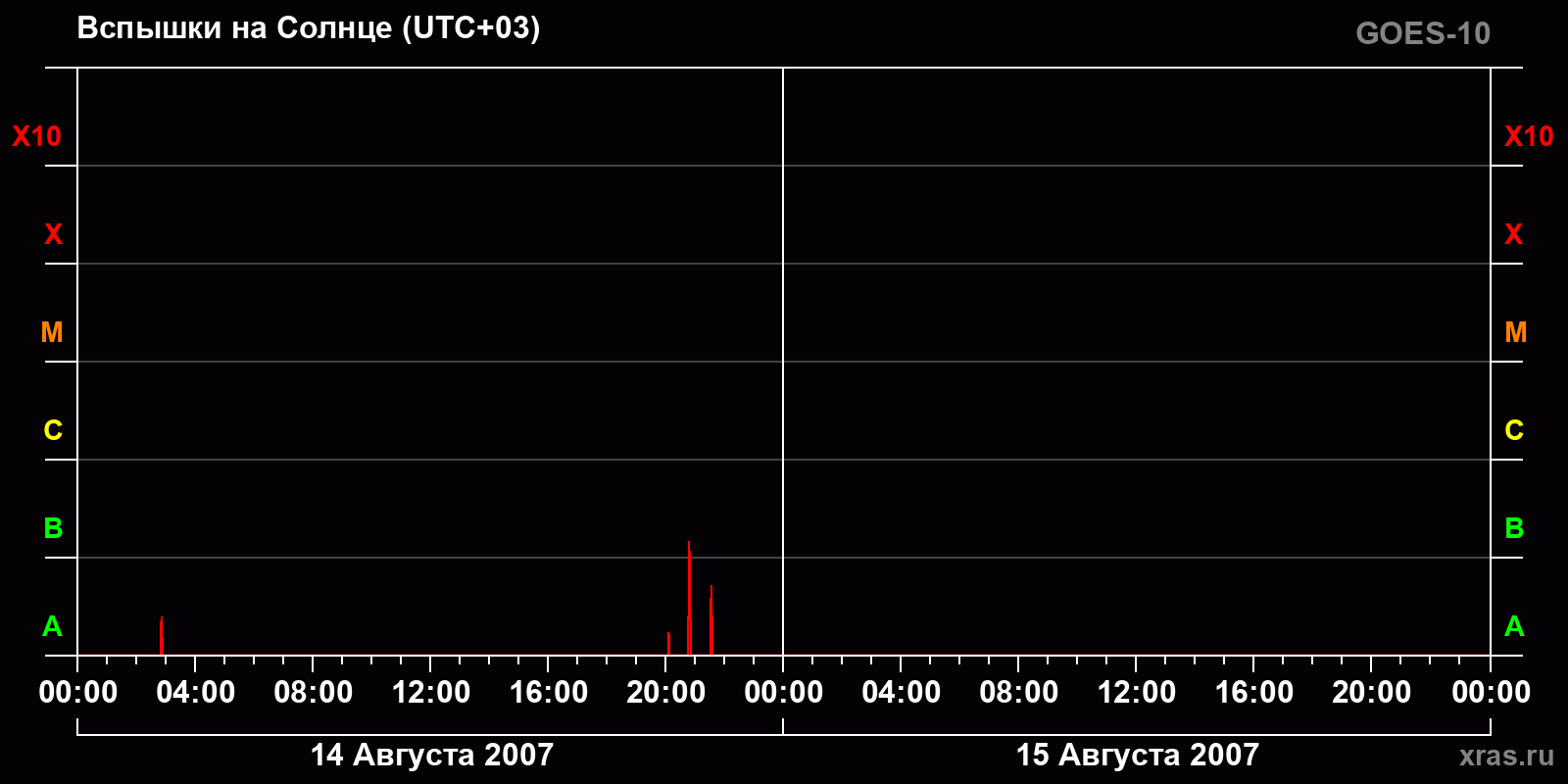 График солнечной активности с 14 по 15 августа 2007 года