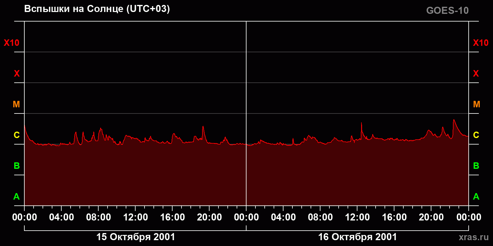 График солнечной активности с 15 по 16 октября 2001 года