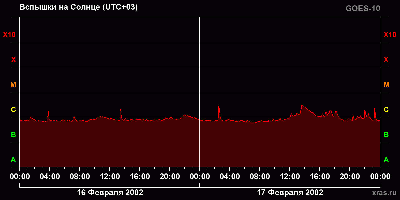 График солнечной активности с 16 по 17 февраля 2002 года