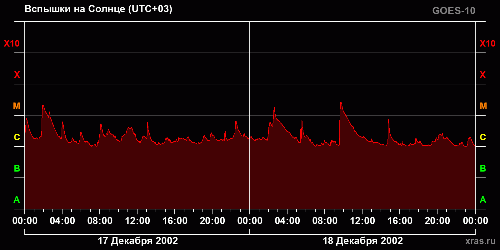 График солнечной активности с 17 по 18 декабря 2002 года