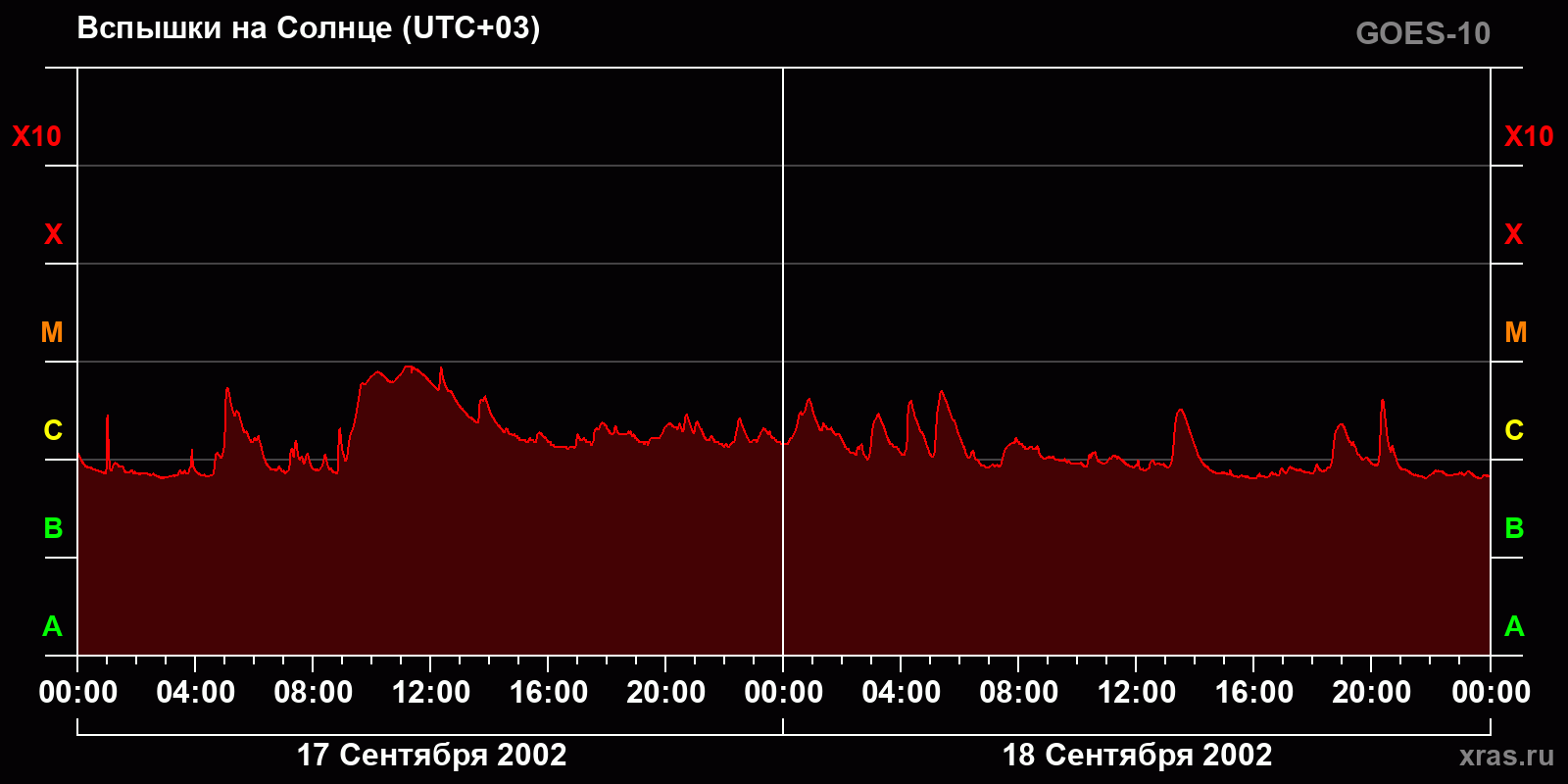 График солнечной активности с 17 по 18 сентября 2002 года