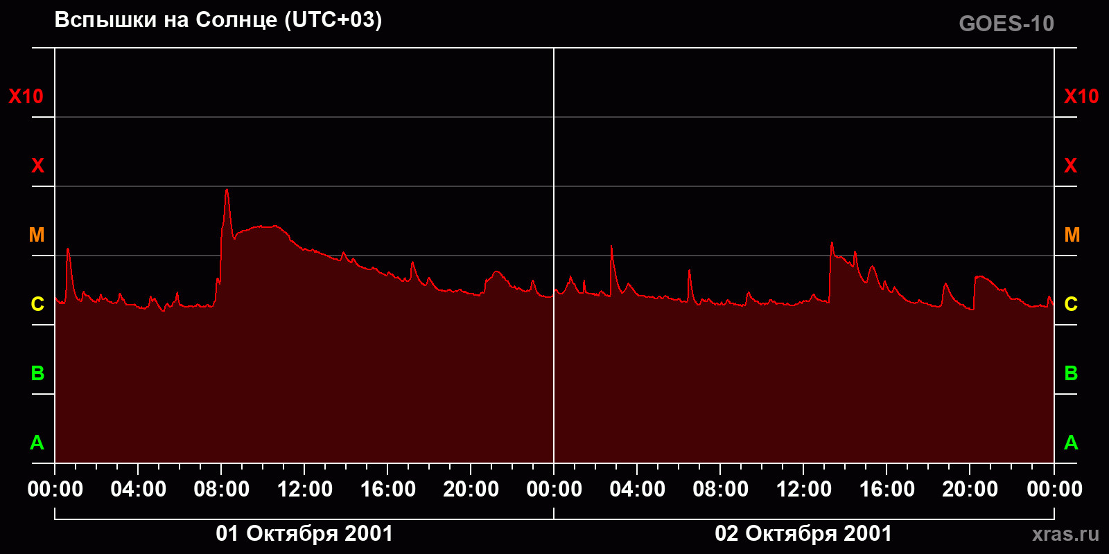 График солнечной активности с 01 по 02 октября 2001 года