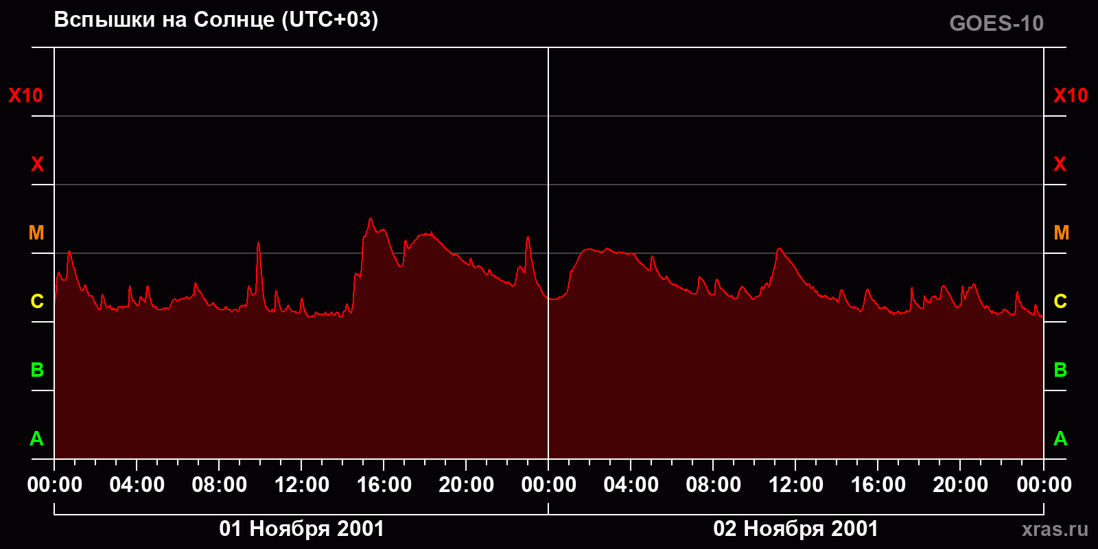 График солнечной активности с 01 по 02 ноября 2001 года
