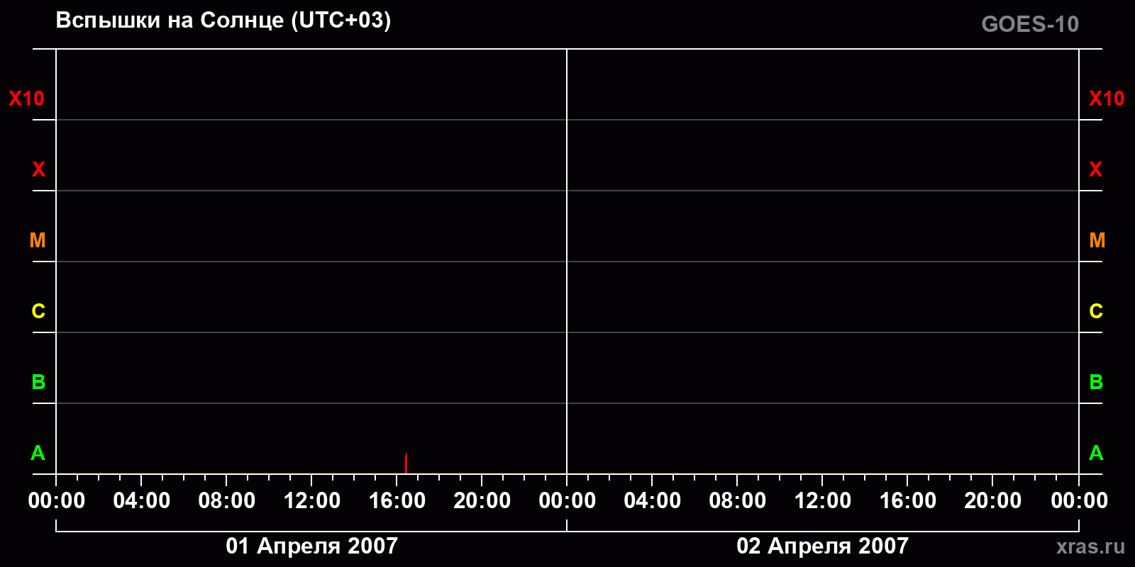 График солнечной активности с 01 по 02 апреля 2007 года