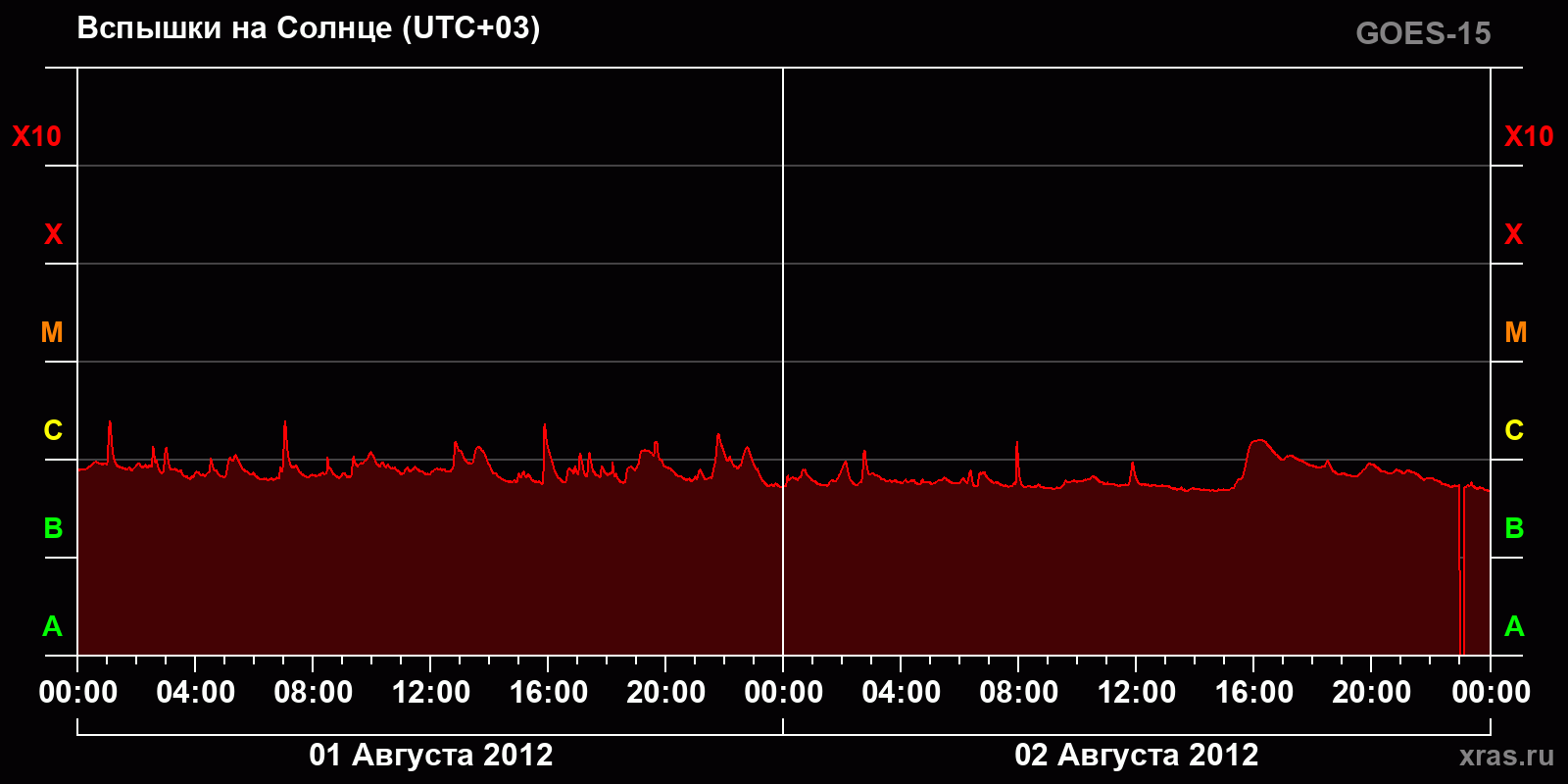 График солнечной активности с 01 по 02 августа 2012 года