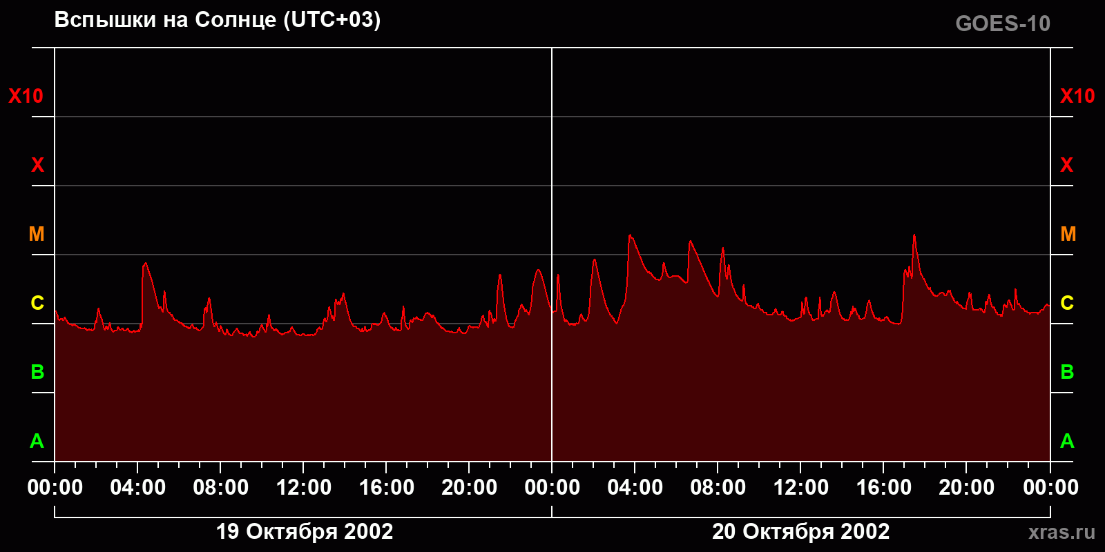 График солнечной активности с 19 по 20 октября 2002 года