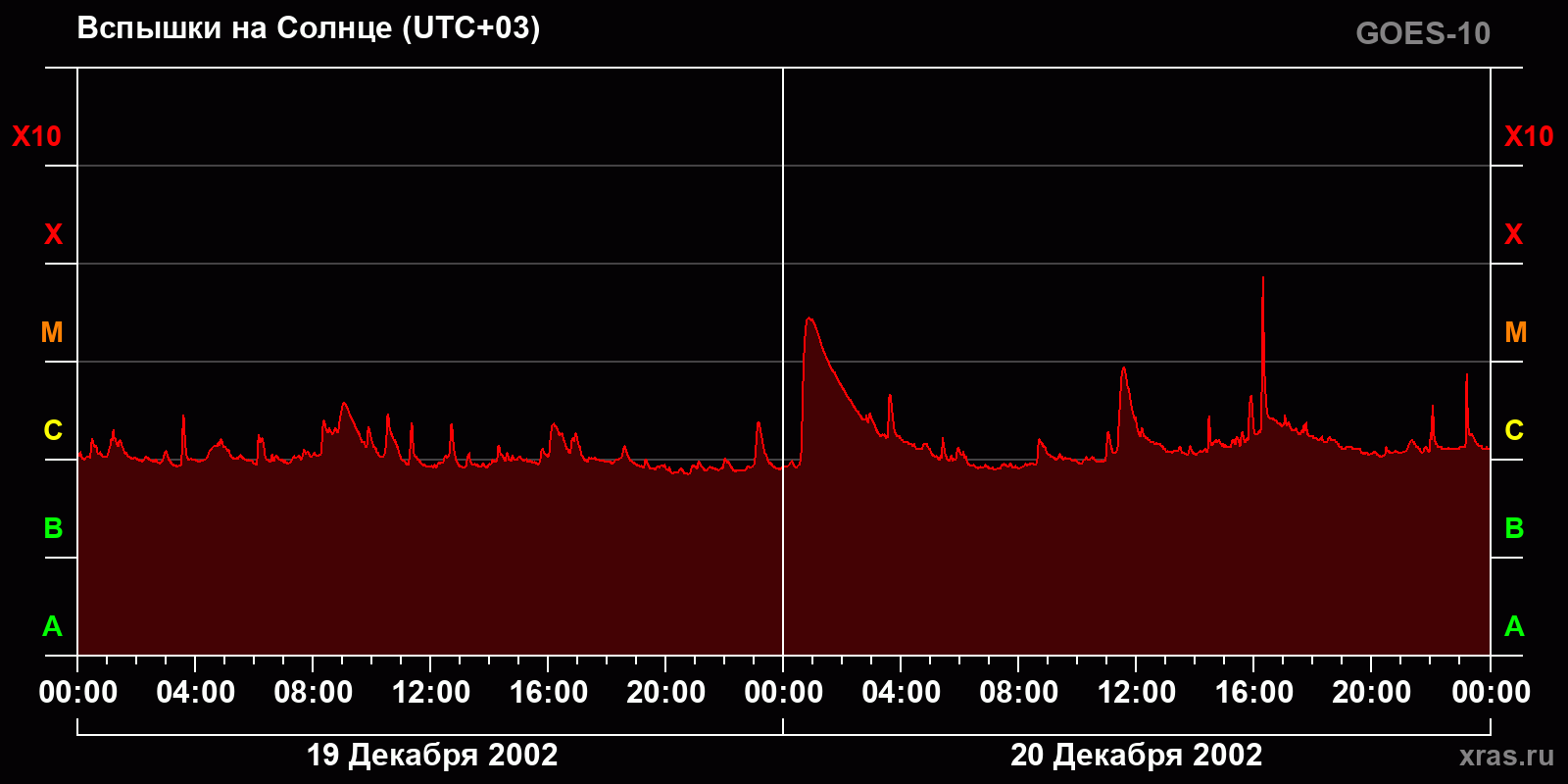 График солнечной активности с 19 по 20 декабря 2002 года