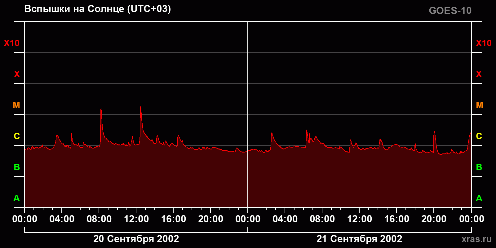График солнечной активности с 20 по 21 сентября 2002 года