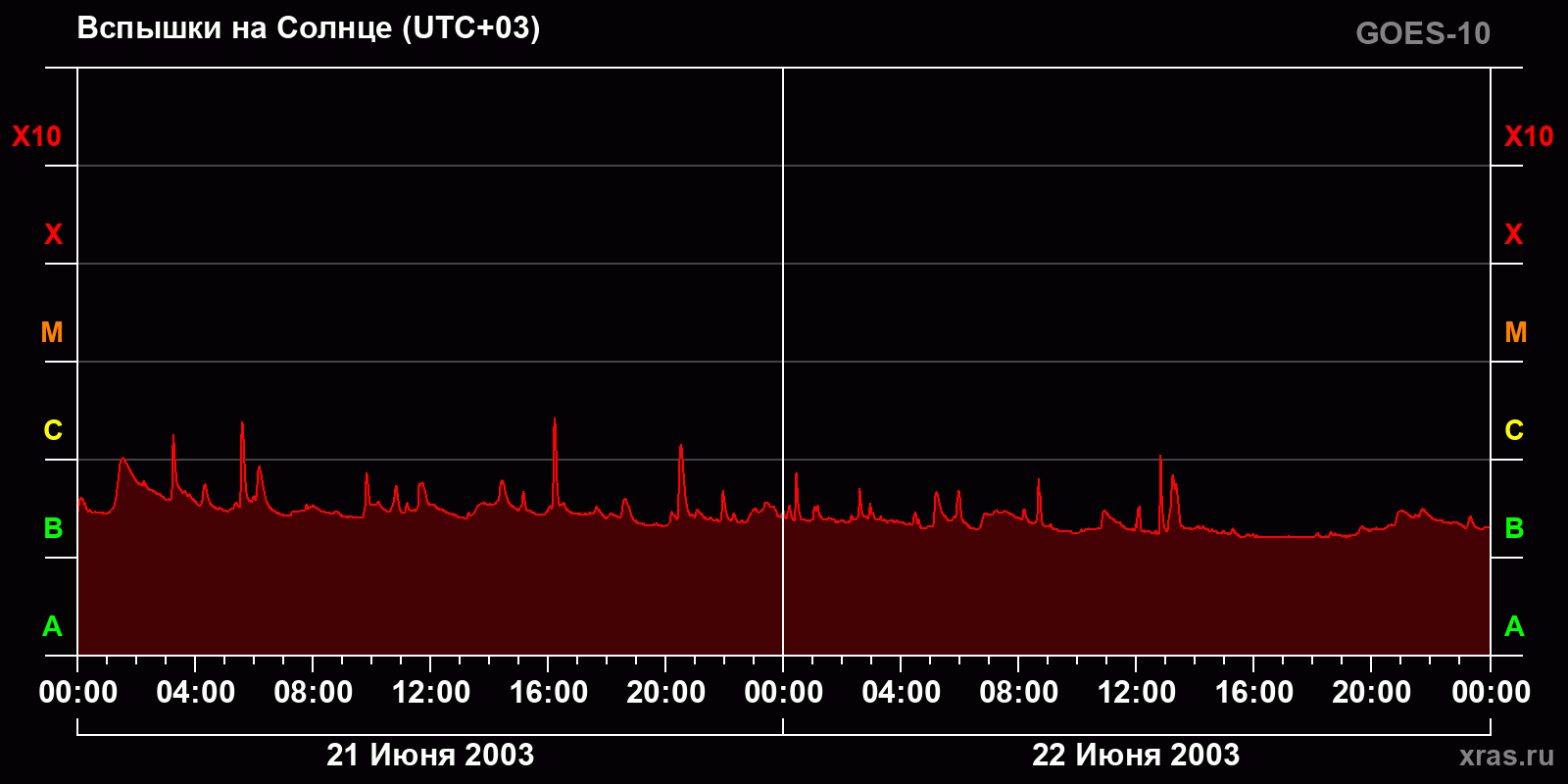График солнечной активности с 21 по 22 июня 2003 года