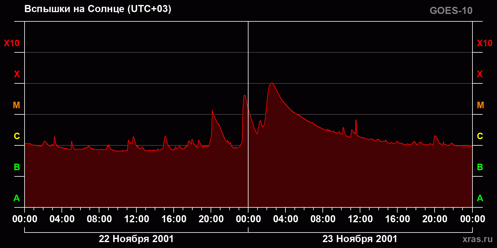 Вспышка уровня M9.9 (сильная) — в 02:30