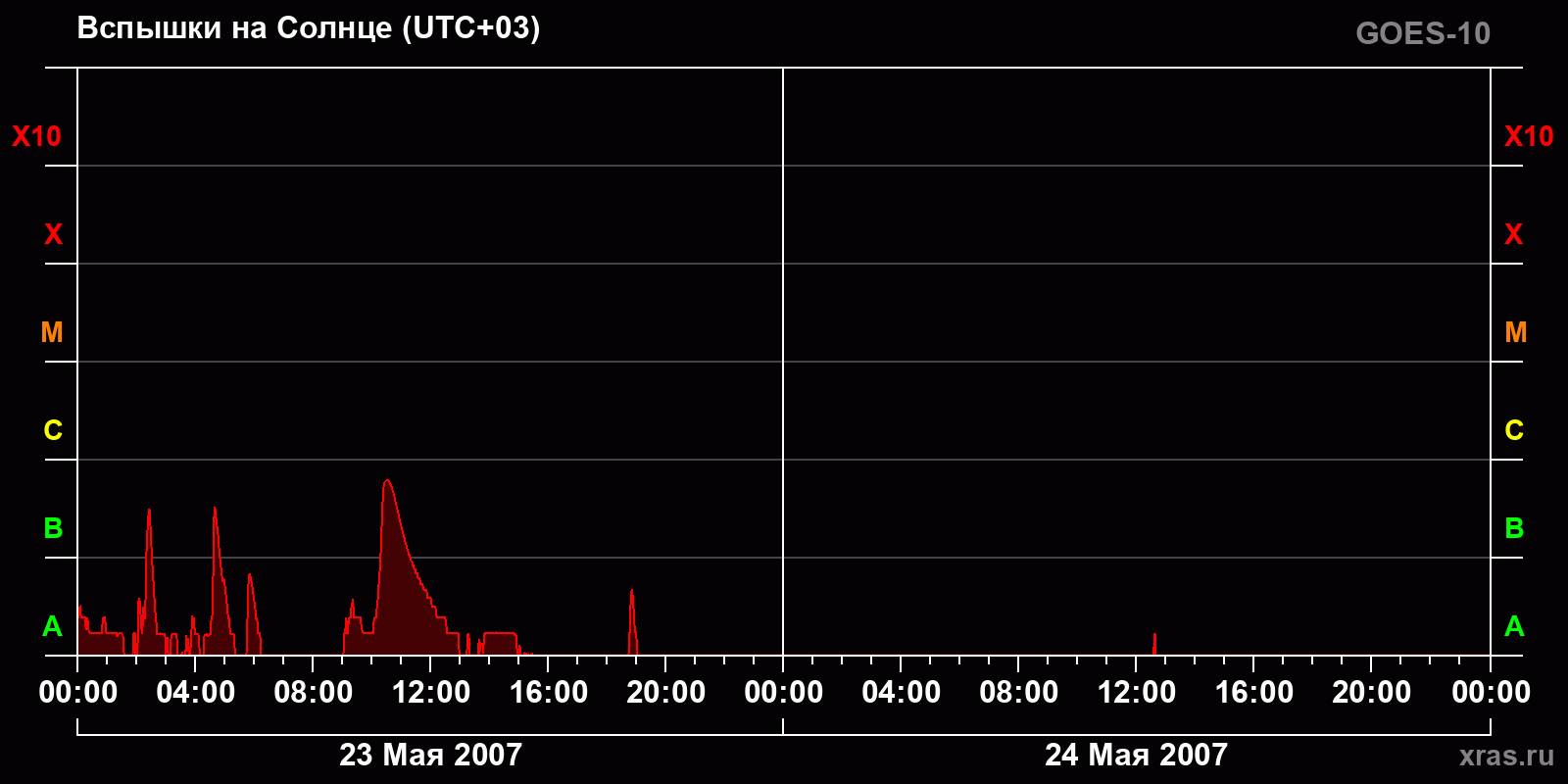 График солнечной активности с 23 по 24 мая 2007 года