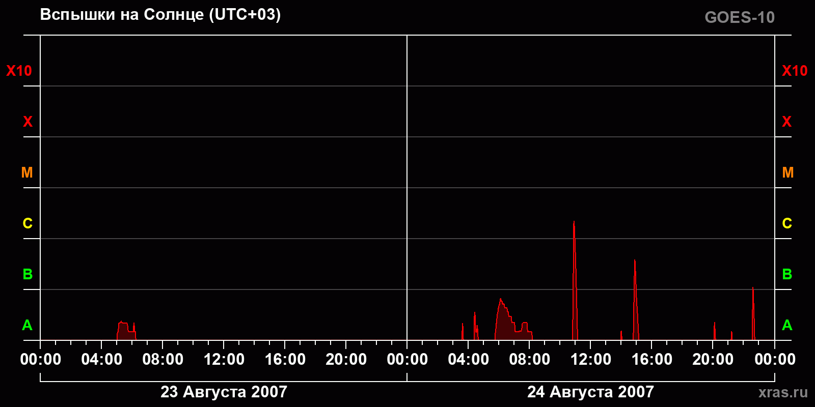 График солнечной активности с 23 по 24 августа 2007 года
