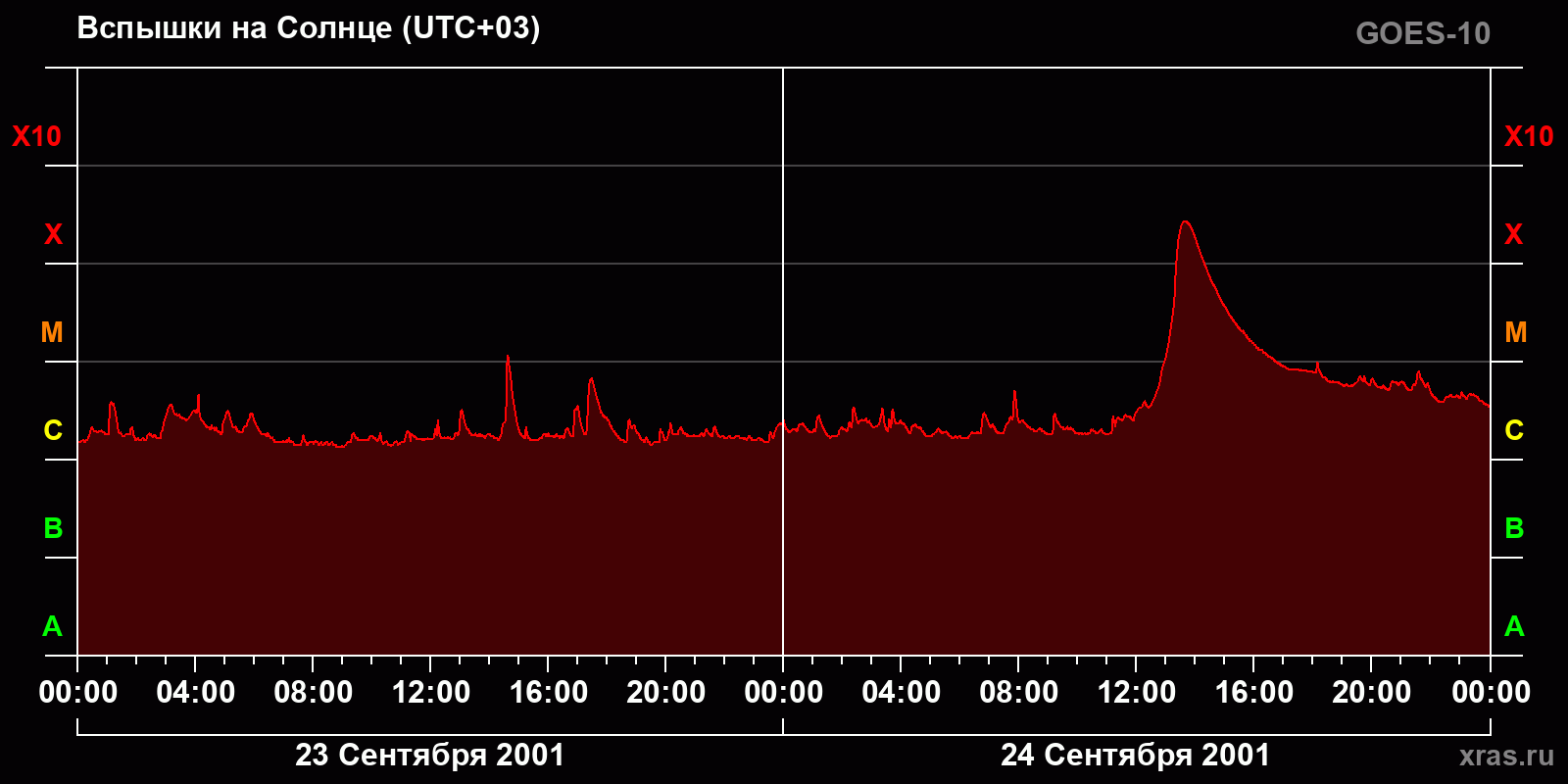 Вспышка уровня X2.6 (очень сильная) — в 13:38