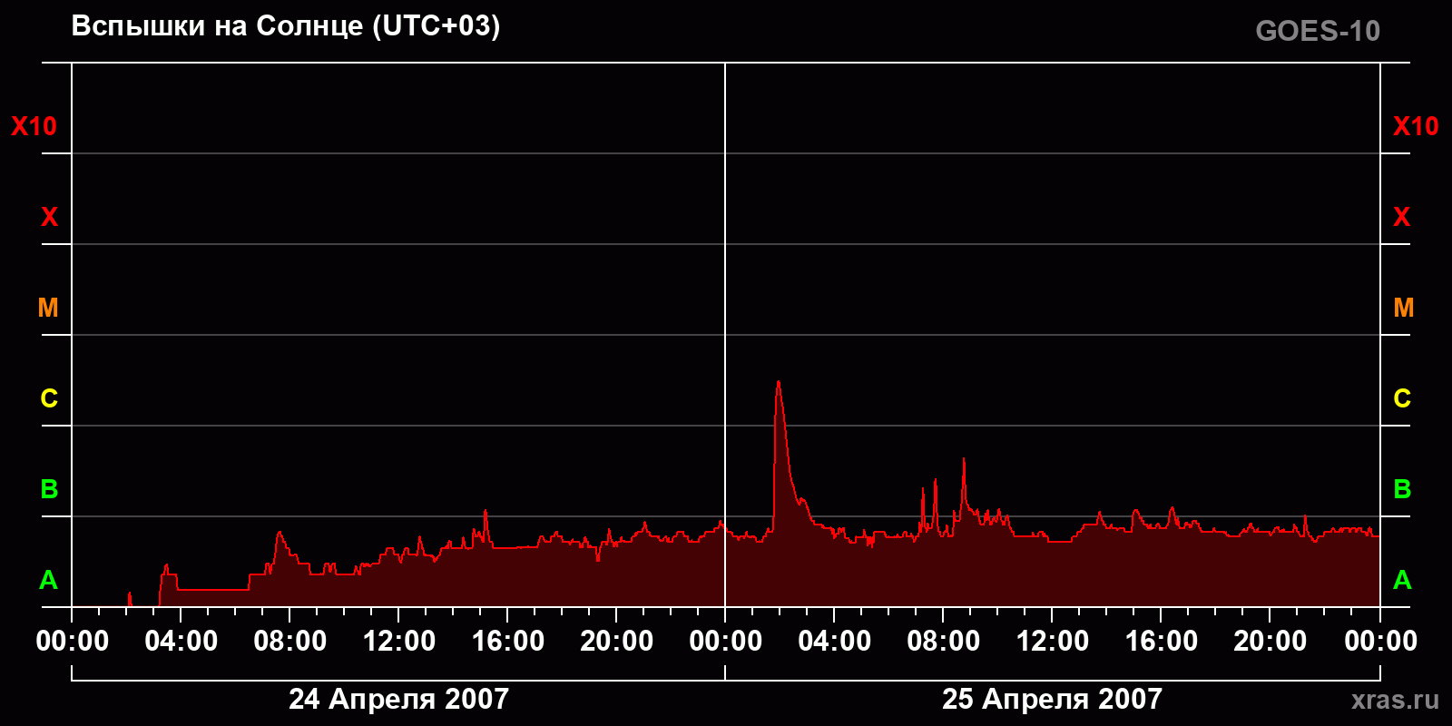 График солнечной активности с 24 по 25 апреля 2007 года