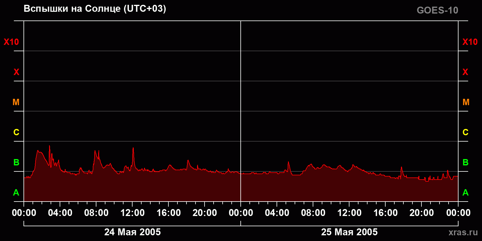 График солнечной активности с 24 по 25 мая 2005 года