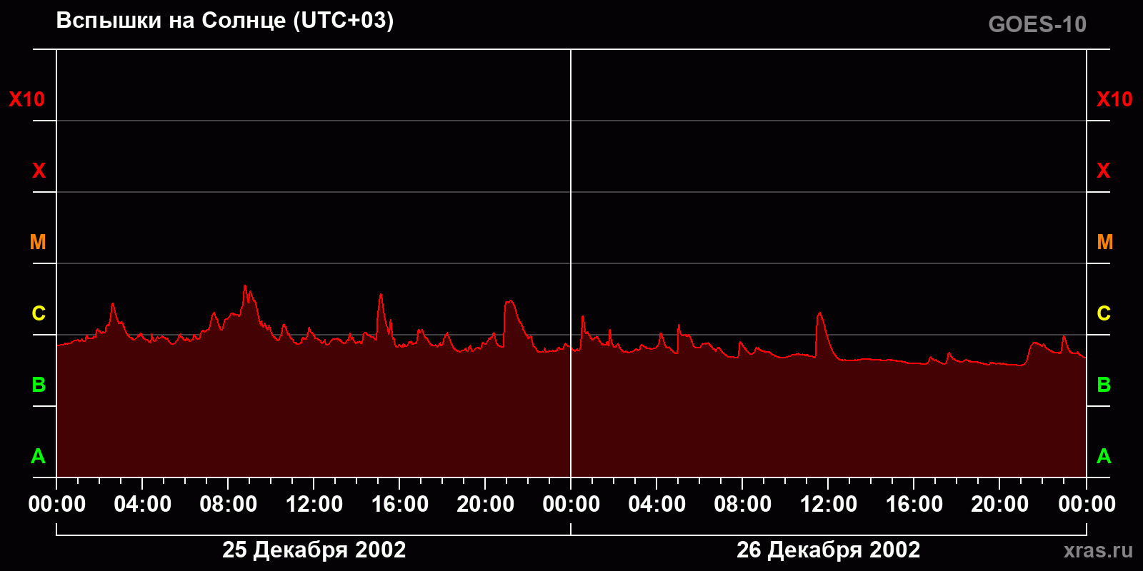 График солнечной активности с 25 по 26 декабря 2002 года