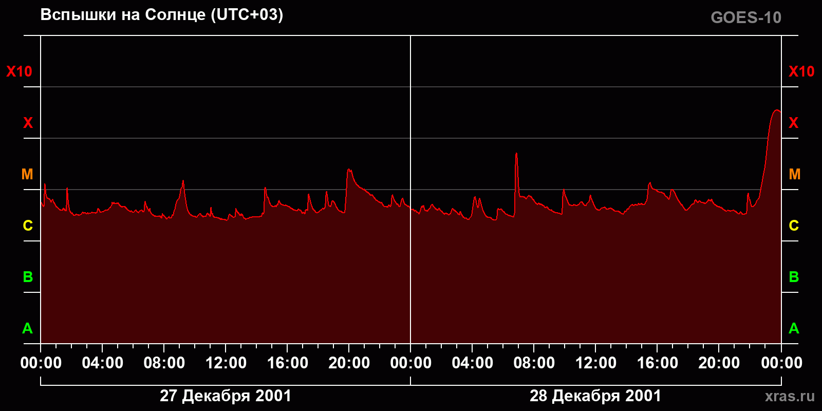 Вспышка уровня X3.4 (очень сильная) — в 23:45