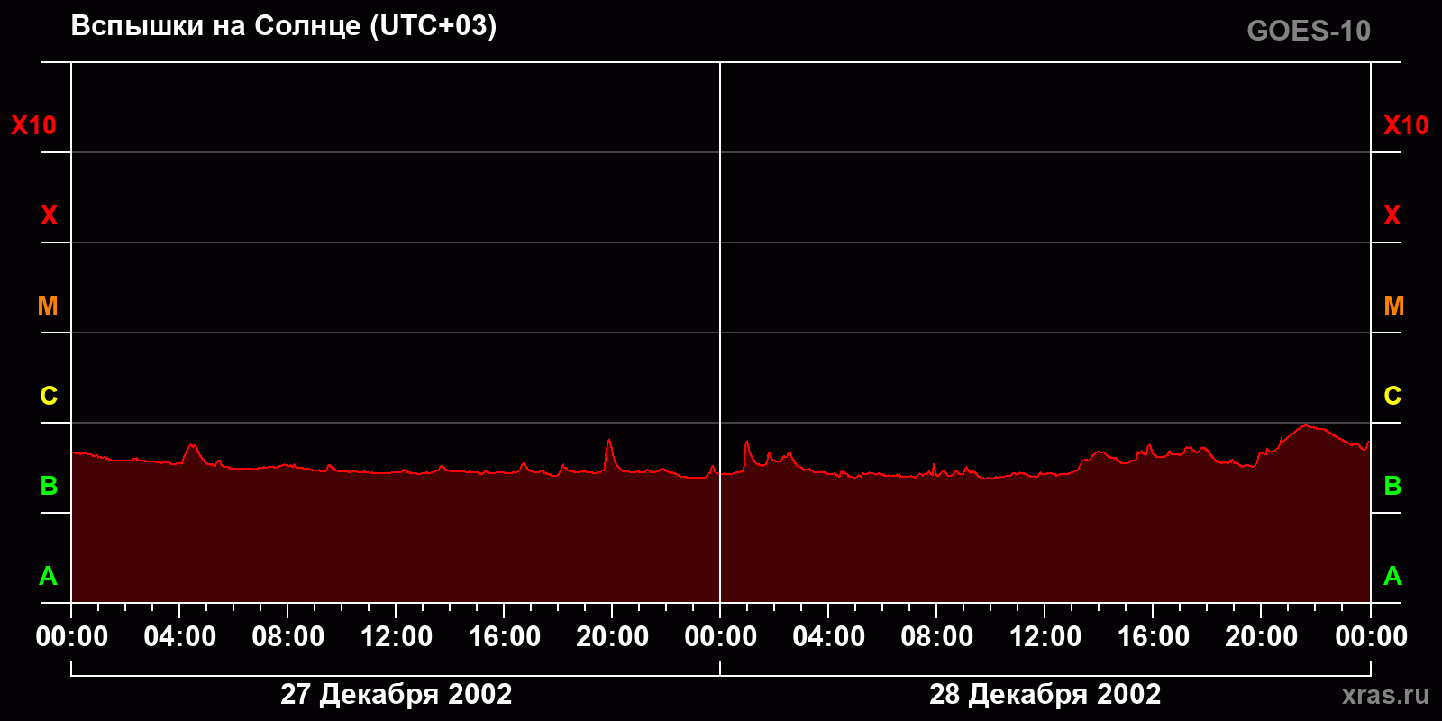 График солнечной активности с 27 по 28 декабря 2002 года