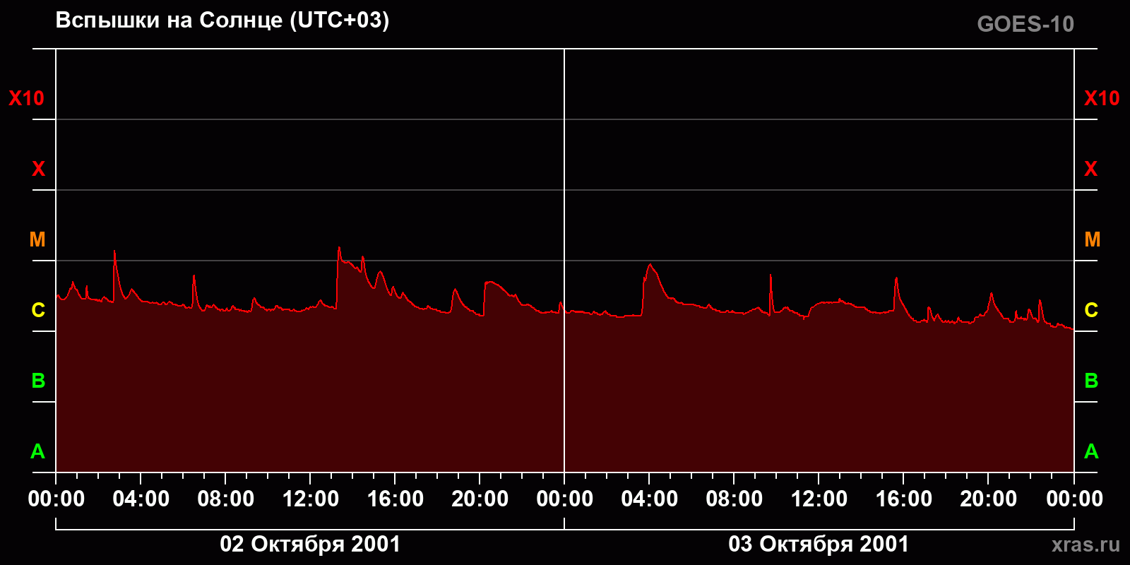 График солнечной активности с 02 по 03 октября 2001 года